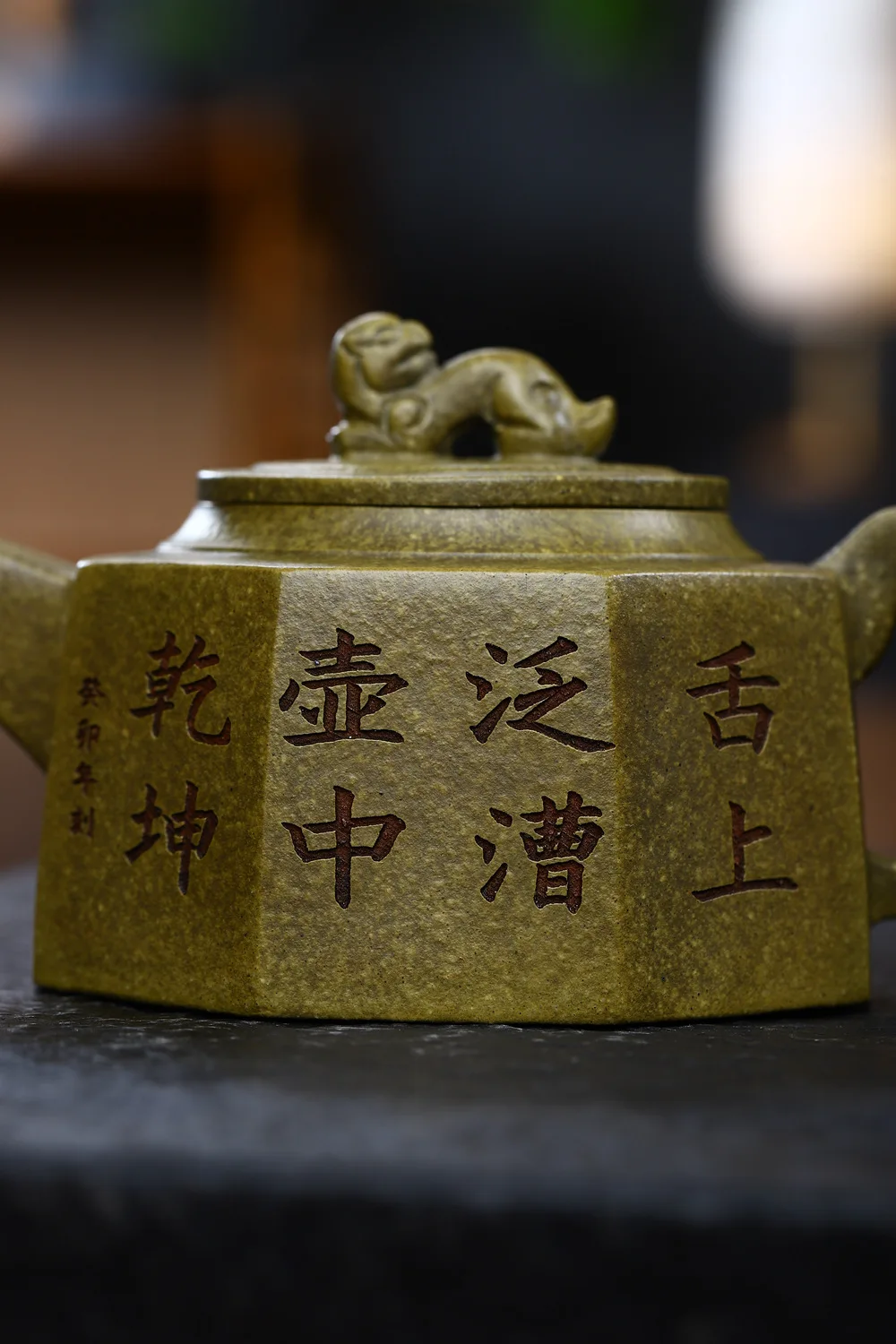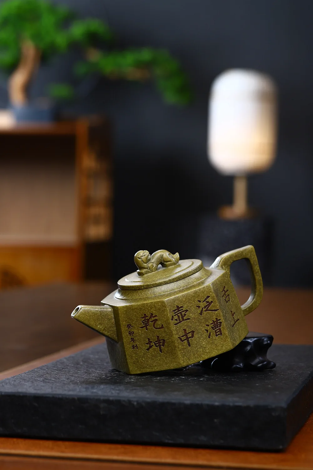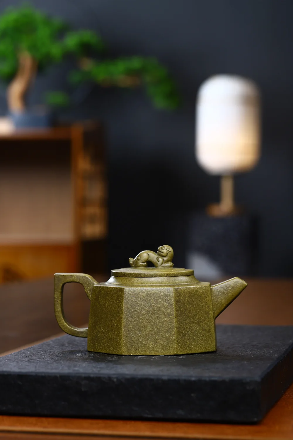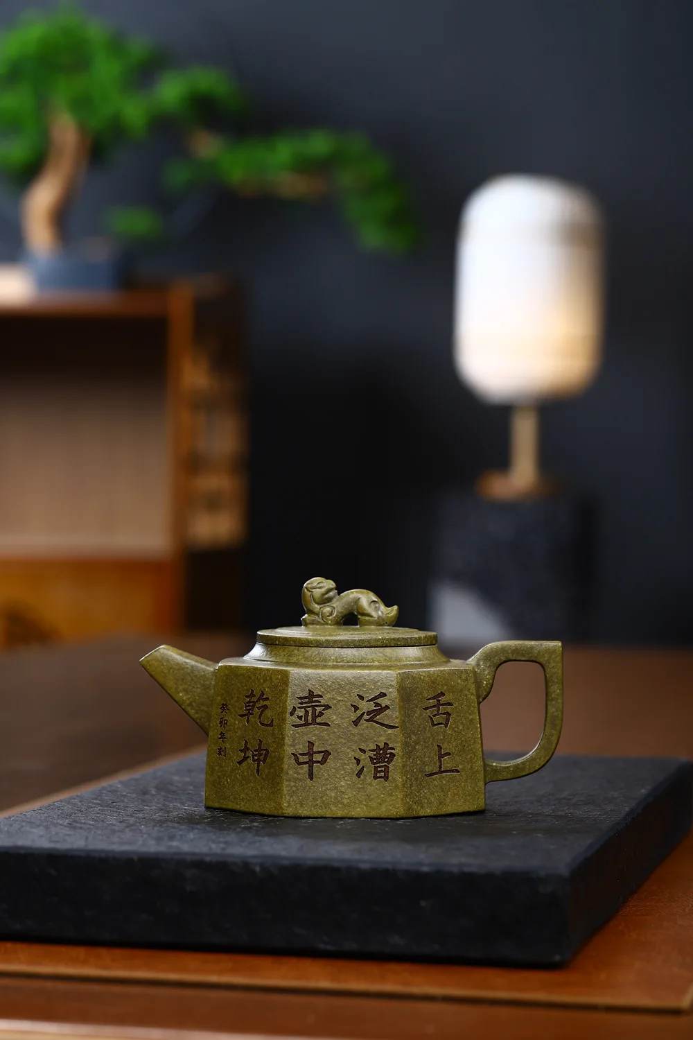 280ml High Grade Yixing Purple Clay Teapot Master Handmade 9 Hole Filter Tea Kettle Chinese Raw Ore Green Mud Zisha Tea Set