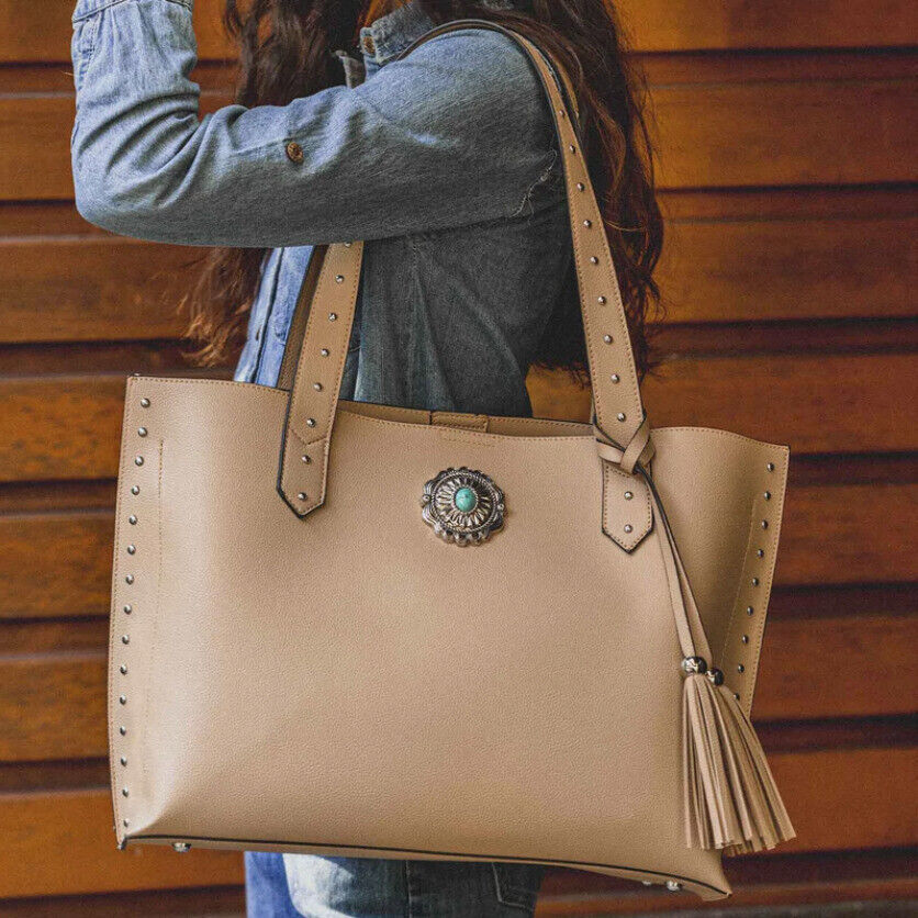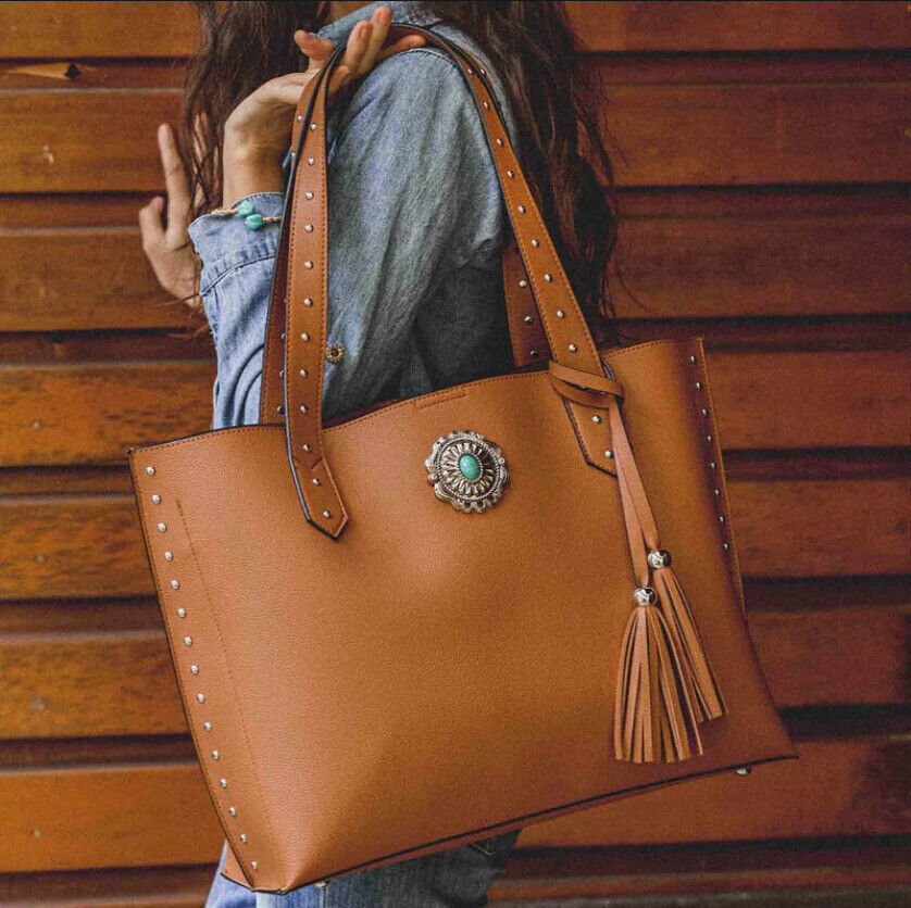 2x Celela Concho Fringe Studs Women Tote Shoulder Handbag Purse Bag W/ Wallet