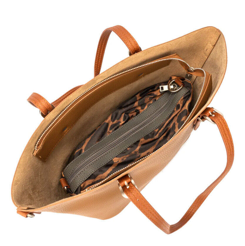 Details: Include a handbag and a small crossbody bag Top zipper closure Inside of the crossbody bag includes a zippered pocket, two open pockets Accented with studs at the bottom Adjustable and detachable crossbody strap Large capacity: perfect for the electronic products, such as Laptop, iPad, and cell phone etc.