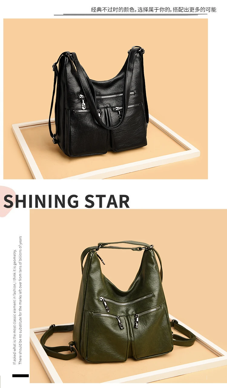 3 In 1 Women Back Pack Bagpack Vintage Women Bag Soft Pu Leather Ladies Casual Tote Designer Shoulder Bags Women's Handbags Sac