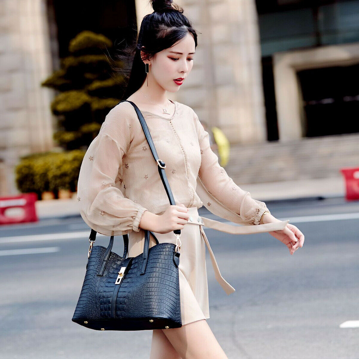 Crocodile Print Style Size L: 12.8x5.5x9.5in M: 8.3x2x6in S: 7.5x0.4x4.8in Handle length: 6in Shoulder Strap length: 50in