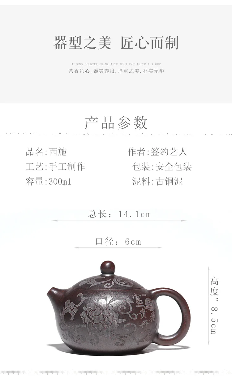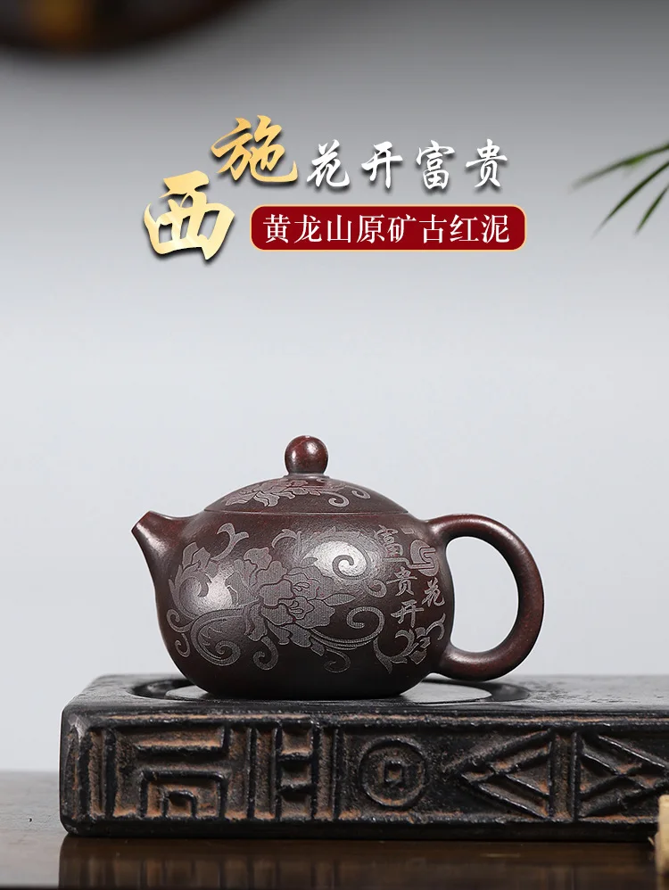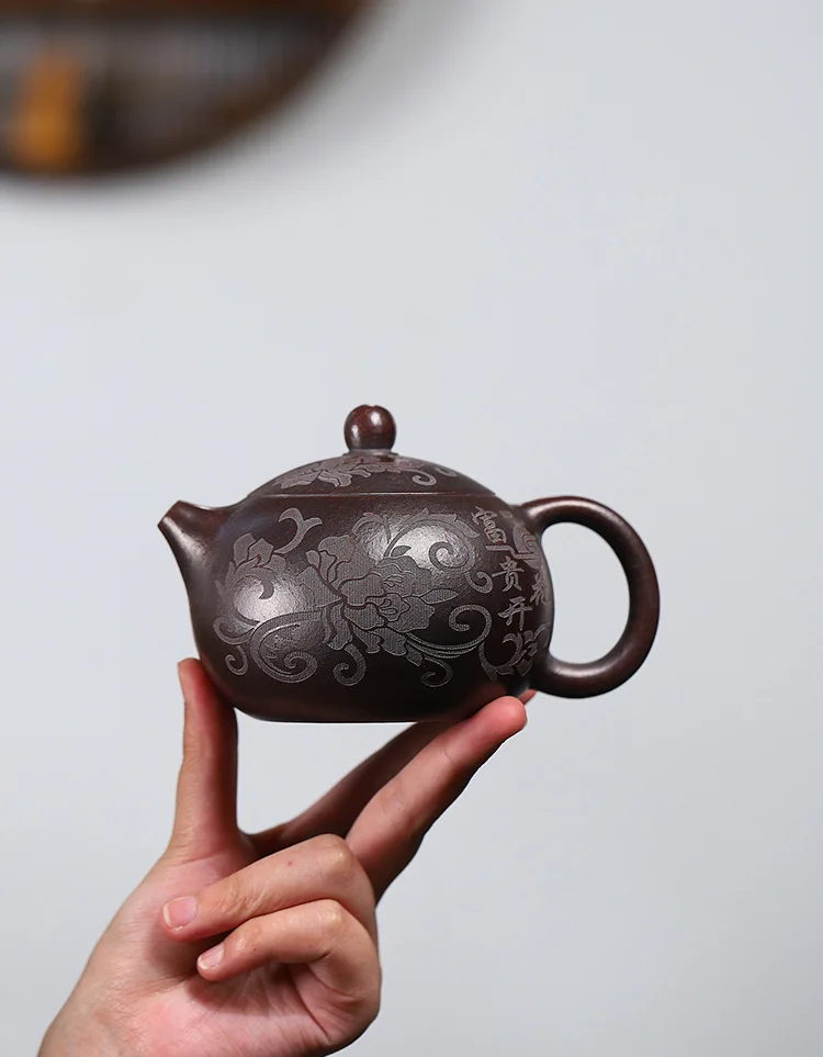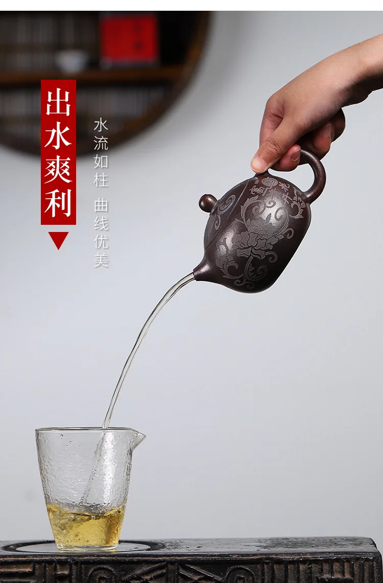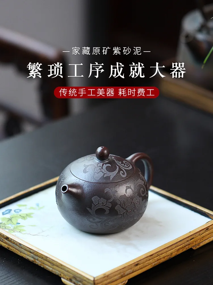 300cc Chinese Yixing Purple Clay Teapots Handmade Tea Maker Raw Ore Black Gold Sand Xishi Tea Pot Zisha Tea Set