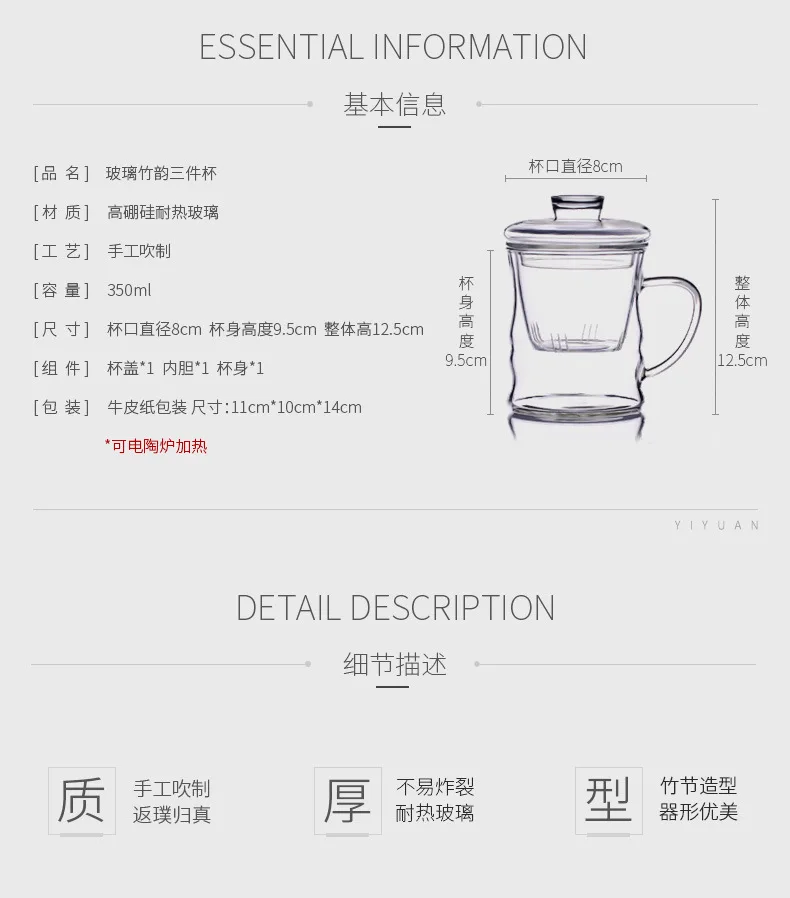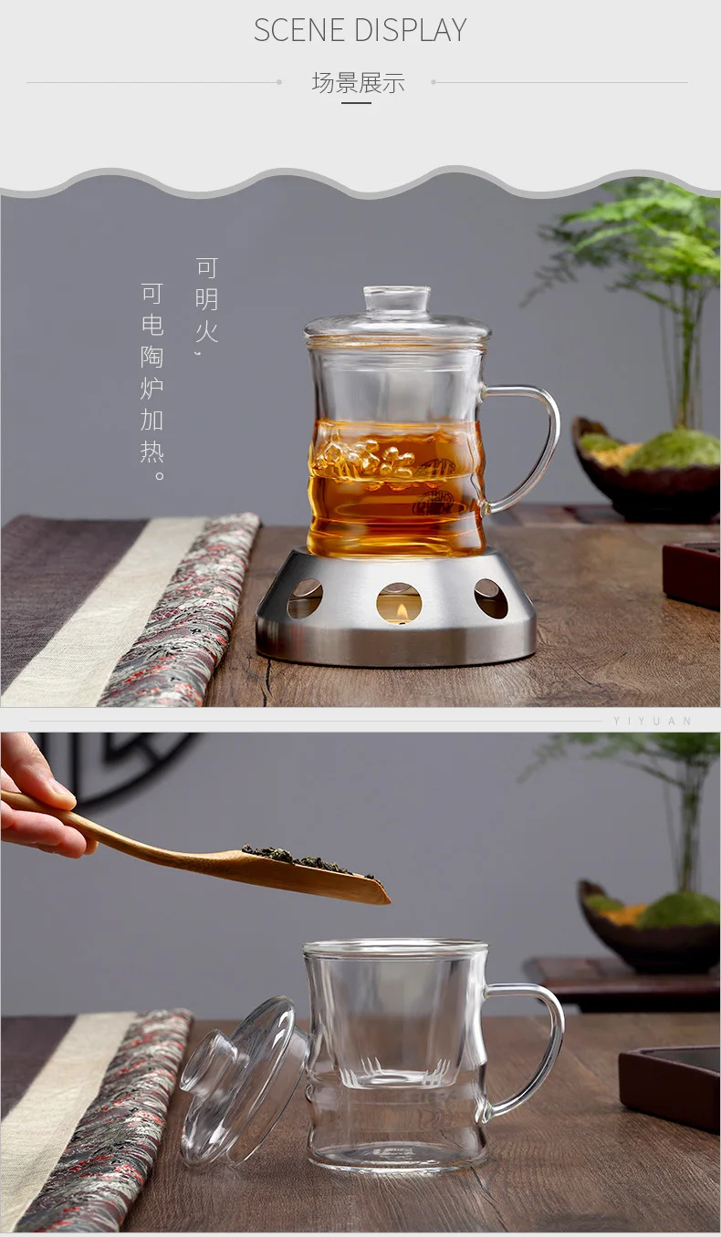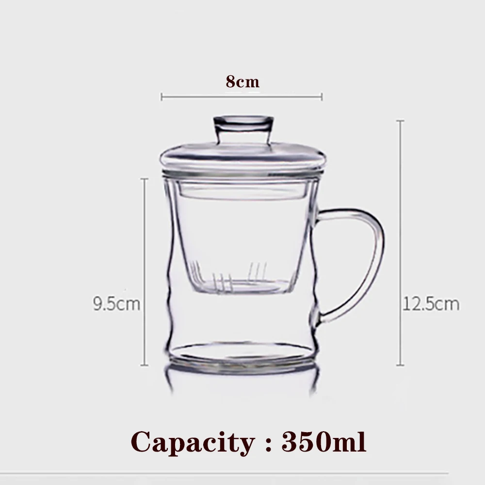 350ML Household Teaware Clear Glass Teacup for Stove Heat Resistant High Temperature Explosion Proof Tea Infuser Green Tea Cups