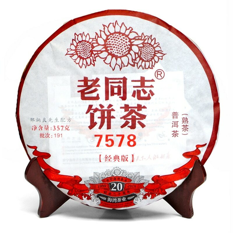 2019 yr, 7578 Yunnan Haiwan Old Comrade Ripe Puerh Pu-erh Tea 357g/cake