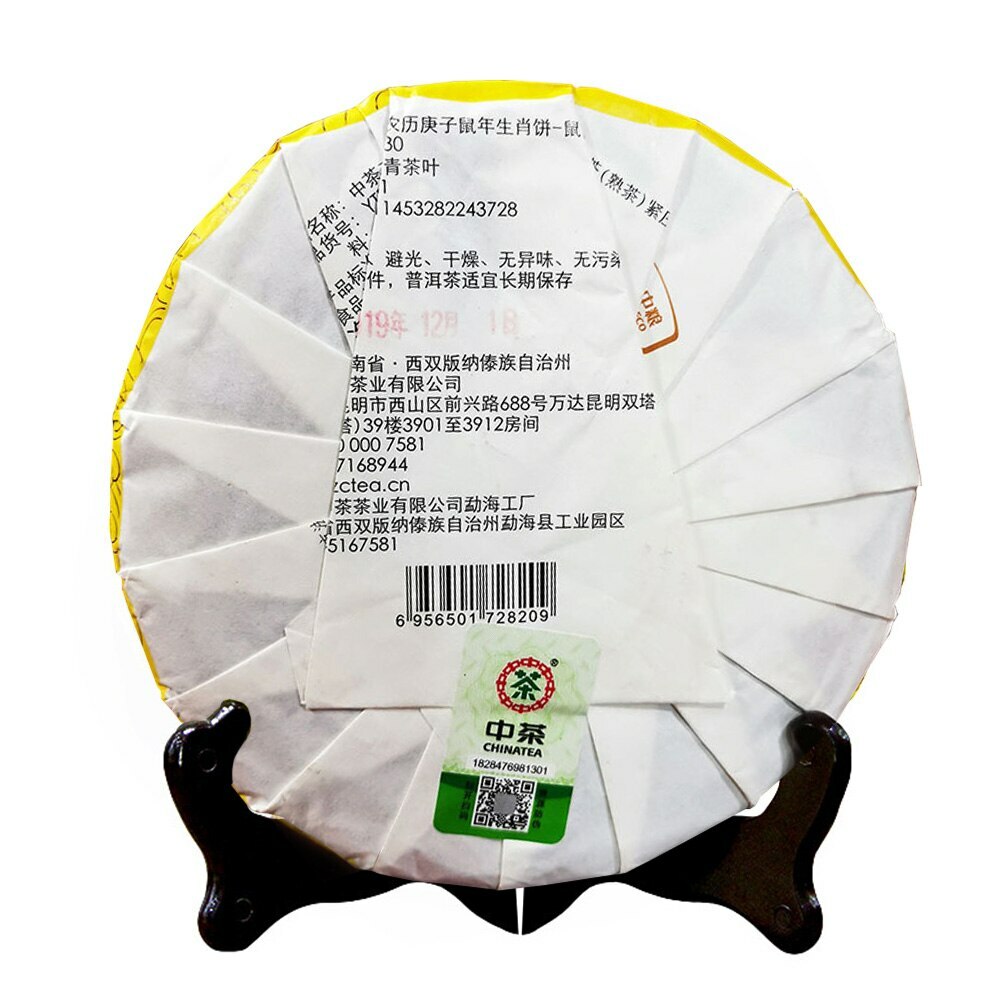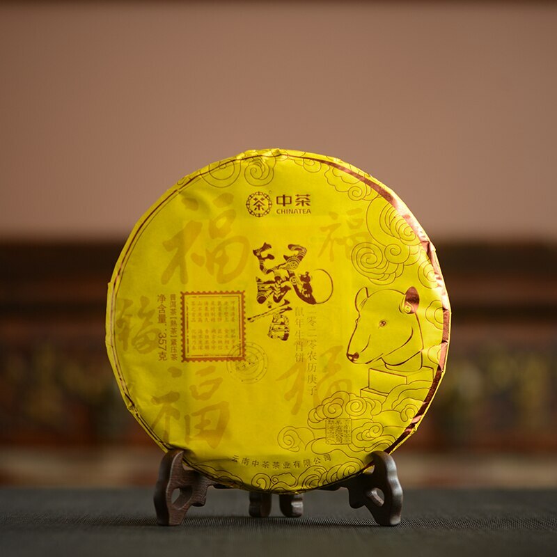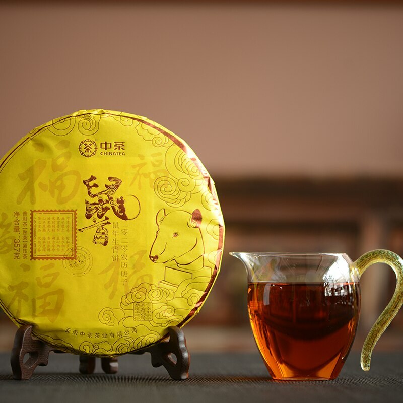 Product name: 2019 Zhong Cha Ripe Puer Cake "Year of Rat" Shu Puerh Packing specification: 357g / Pcs Storage: Avoid sunlight, ventilation places Shelf time: The longer the better This "Year of Rat" puer tea cake, was made for chinese calendar 2020 year, selected thea raw material of Bulang and Yiwu area, hand pressed, abd steamed, dried by Menghai tea factory. This puer pancake is round and full, has a brownish red color, dried tea leaf looks stout and uniform, pancake inculdes many tea buds, clean and clear, smells a aged aroma. Bright yellow infusion, excuds a scent of history, it tastes thick and balance, has a sense of rice soup, delicated, and a sweet aftertaste, smooth.