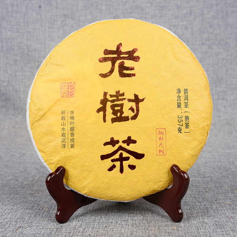 357g Big Golden Bud Mellow TeaOrganic Old Tree Tea Yunnan Pu-erh Ripe Tea Cake-