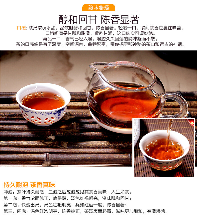 Net weight: 357g/cake, price for one pc only. Production date: Randomly Storage time:the long the better Material: Yunnan Large-leaved Sunshine Withering Antirhea Chinensis. Manufacturer:KunmingColourful Yunnan Qing Feng XiangTea Factory. Pu-erh tea can be purchased as either raw/green (sheng) or ripened/cooked (shu), depending on processing method or aging. Sheng pu-erh can be roughly classified on the tea oxidation scale as a green tea, and the shou or aged-green variants as post-fermented tea. Unlike other teas that should ideally be consumed shortly after production, pu-erh can be drunk immediately or aged for many years; pu-erh teas are often now classified by year and region of production much like wine vintages. ![]() ![]() ![]() ![]() ![]() ![]() ![]() ![]() ![]() ![]() ![]() |