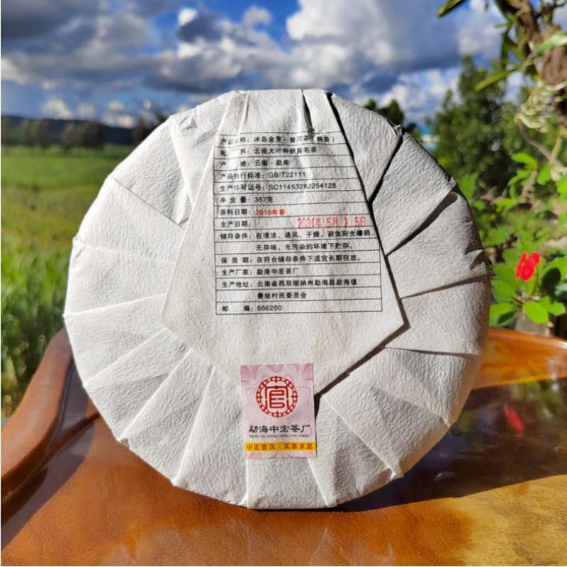 357g Yunnan Old Pu'er Tea Cake Golden Buds Iceland Pu-erh Ripe Tea Pu-erh Tea