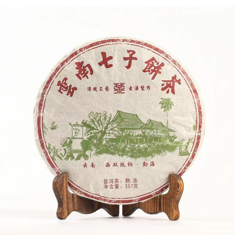 357g Yunnan Qizi Puerh Ripe Tea Cake Ancient Tree Pu'er Cooked Tea Chinese Pu-erh Black Tea
