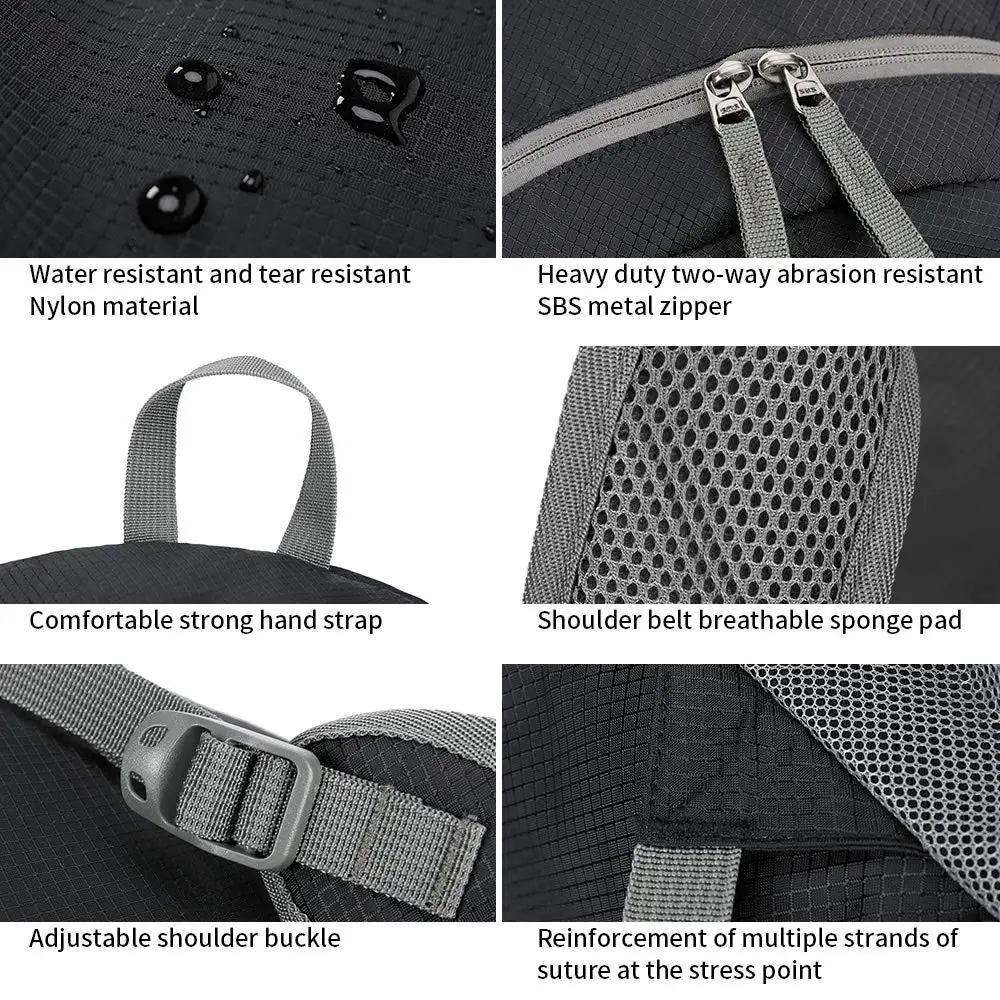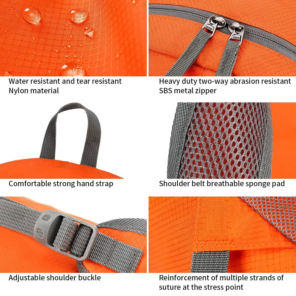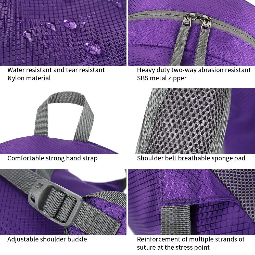 【INCOMPARABLE QUALITY】Ultra-durable and Light with weight only 0.78 pounds.This backpack is made of high quality tear and water resistant nylon fabric, Heavy duty two-way SBS metal zippers and enhanced by bar-tacks at major stress points provide long-lasting durability against daily activities.The extra strength provided by the double-layer bottom piece makes it possible to carry more stuff.