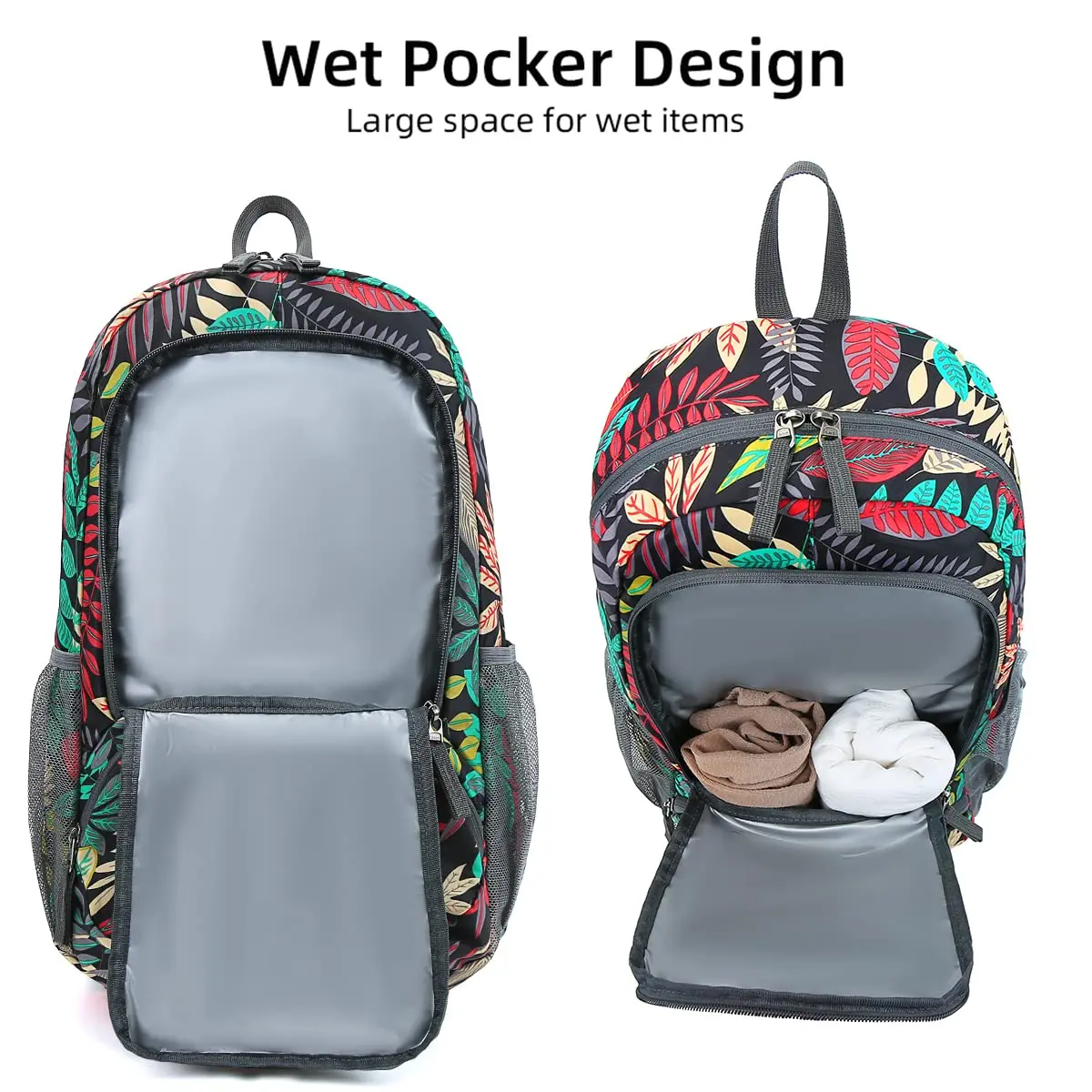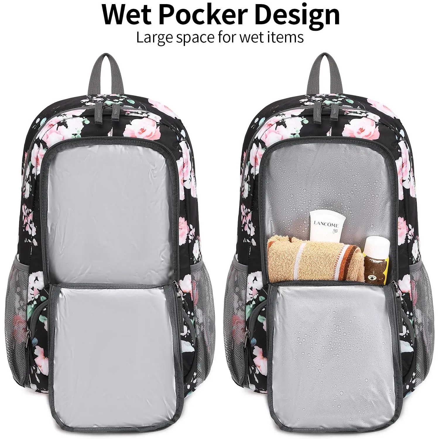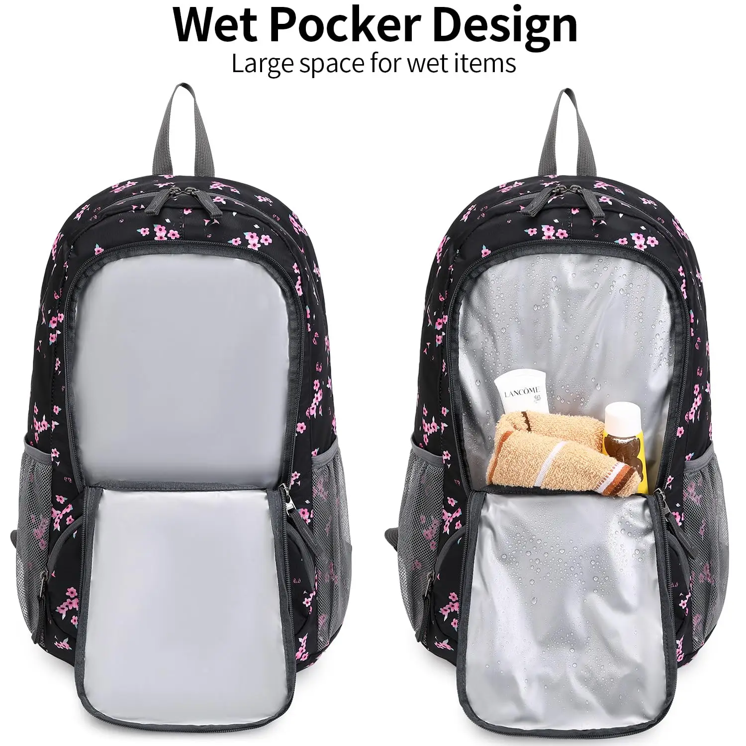 【Upgraded Wet Pocket Design】FENGDONG backpack stands out with more humane design for easy and convenient use. One big waterproof wet pocket is added to the front compartment, can let to the internal wet pocket, to better separate sweaty clothes, towels or other personal things after swimming or taking exercise.