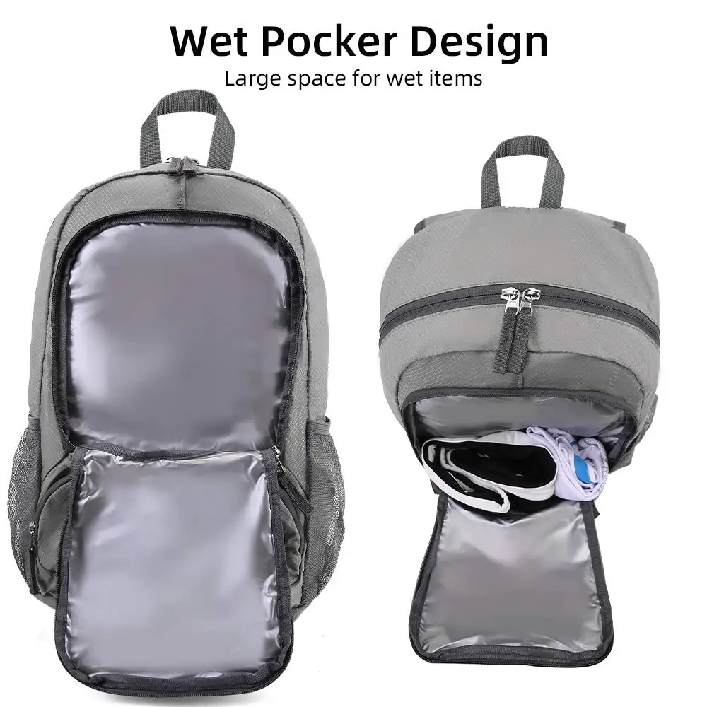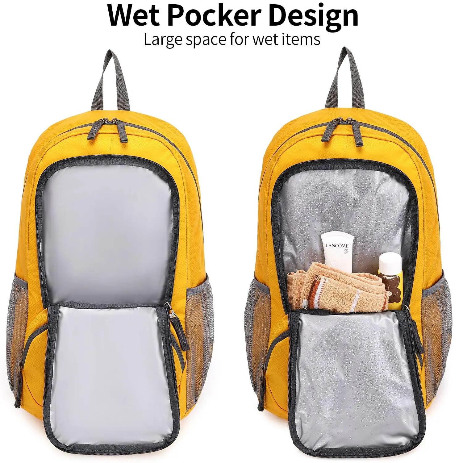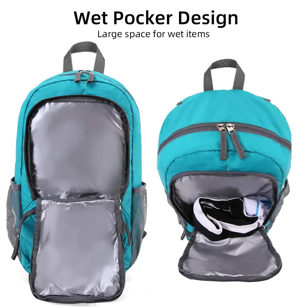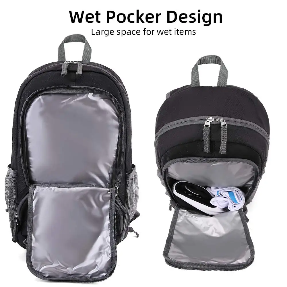 【Upgraded Wet Pocket Design】FENGDONG backpack stands out with more humane design for easy and convenient use. One big waterproof wet pocket is added to the front compartment, can let to the internal wet pocket, to better separate sweaty clothes, towels or other personal things after swimming or taking exercise.