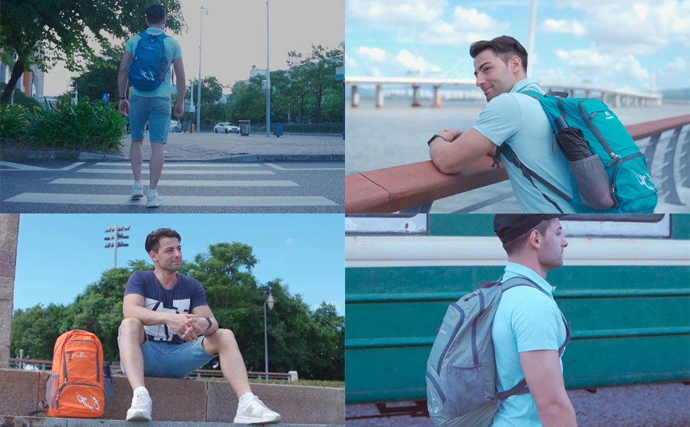 【Collapsible & Comfortable】It can easily fold into its own pocket for storage,and unfold it when you need it. A must have for every trip.Breathable mesh shoulder straps with plentiful sponge padding help relieve the stress from your shoulder. A must have for sports , hiking, camping and traveling.