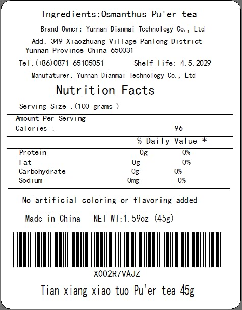 3g*15 capsules七彩云南普洱茶Raw Puer Tea (天香生茶) Yunnan Pu-erh Tea 45g(1.59OZ)Unfermented Chinese black tea, daily drinks and gifts