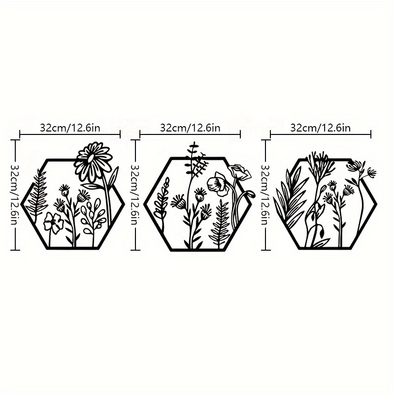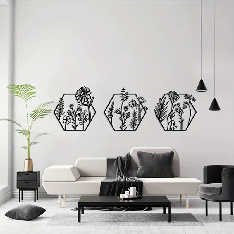 3pcs Metal Flower Wall Art, Floral Decoration, Metal Flower Wall Decoration
