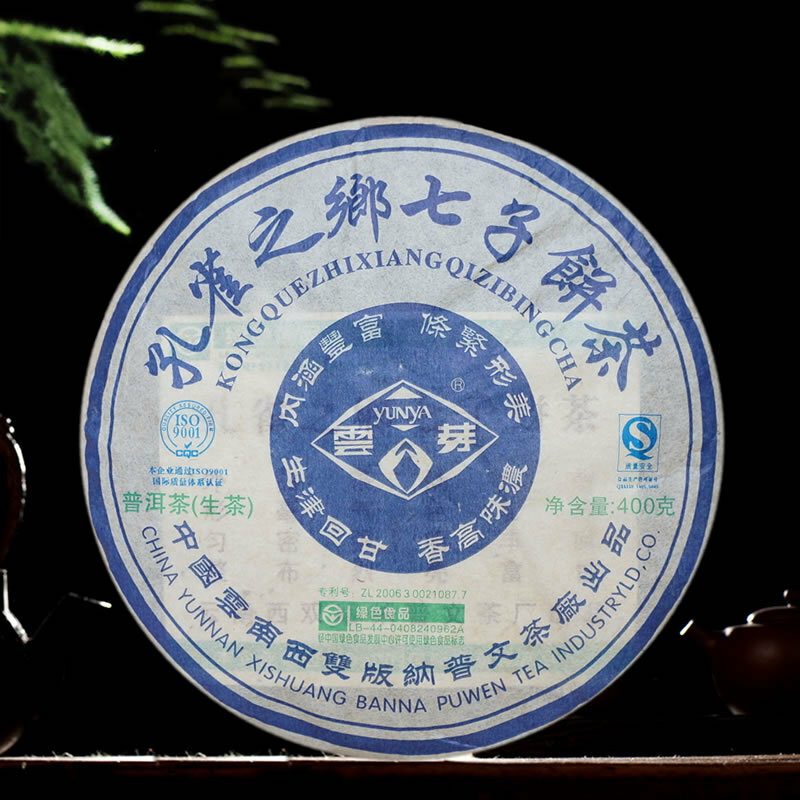 This is a Pu-erh raw cake compressed in 2006 by Pu Wen Factory using tea leaves harvested from Pu Wen's own eco estate in Xi-Shuang-Ban-Na with all 1-3 grade spring leaves. This cake is know to use same leaves inside out (no mixing, covering or blending), single estate corp. It leaves are vibrant, full and strong. It brew is bright yellow in colour, with gently sweet flavor and fast and refreshing after taste. It is a cake that won the silver prize during the 2006 China Pu-erh Tea Future Strategy Summit. |