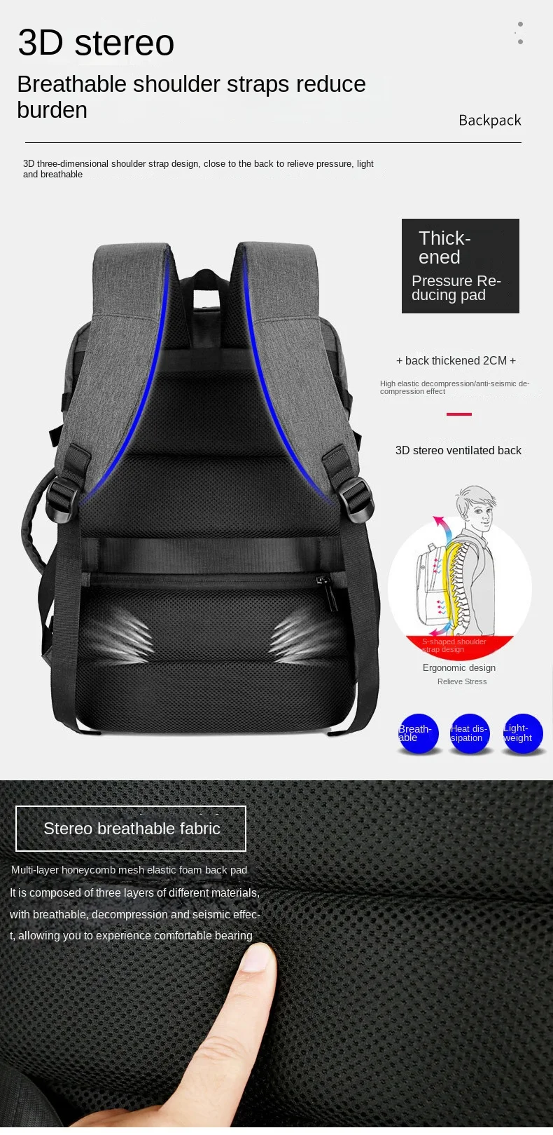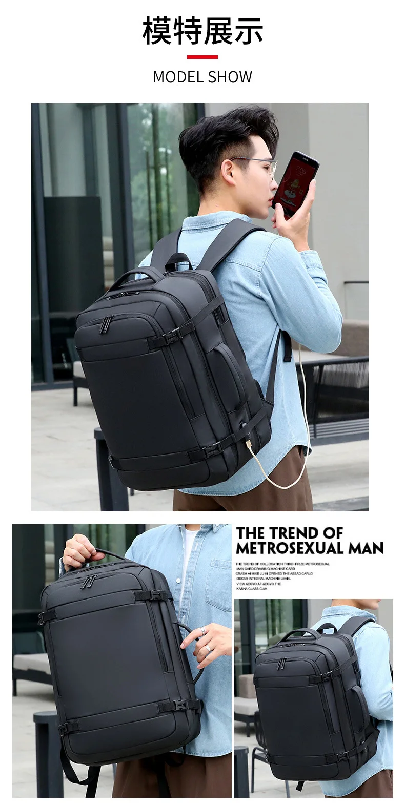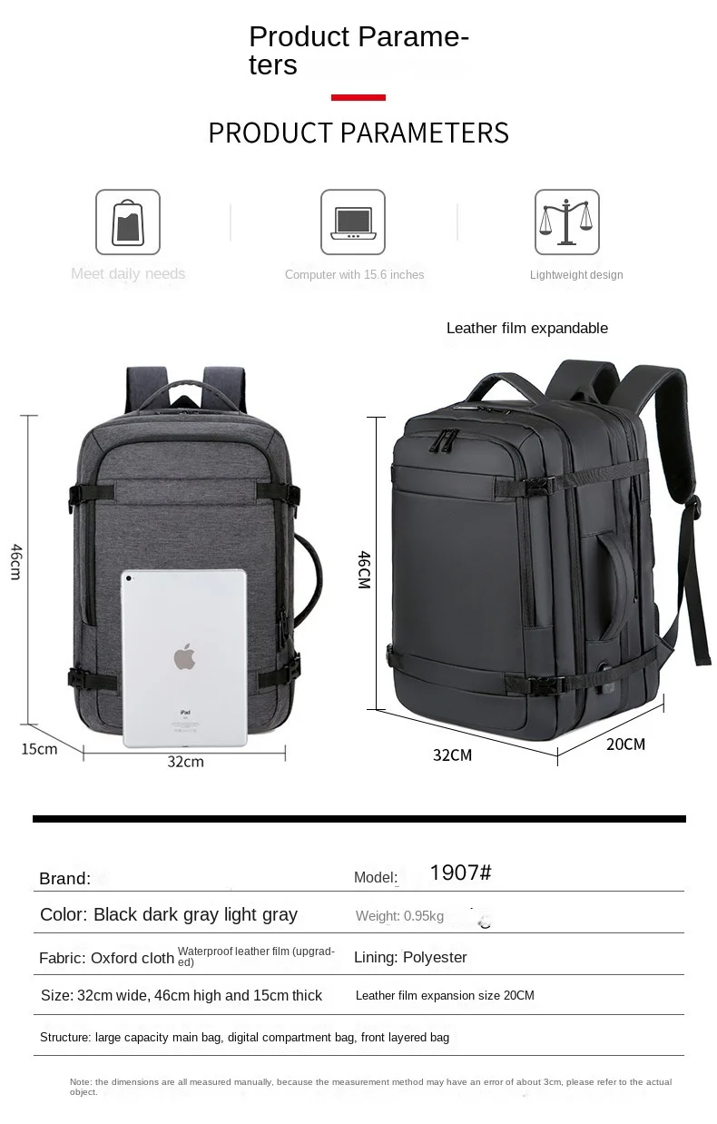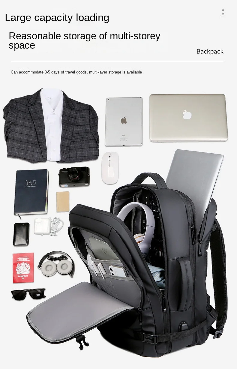 40L Expandable USB Charging Travel Backpack Men Large Capacity Business Water Resistant Durable 17-inch Computer Backpack New