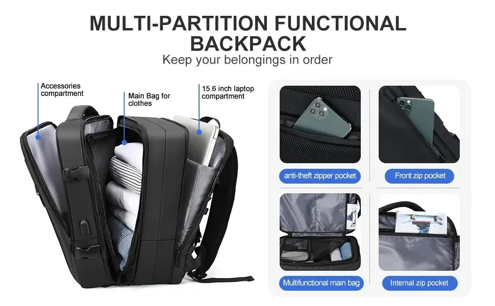 【Carry on Backpack Flight Approved】The overall size meets the size standards of the aircraft, and the portable zipper opening facilitates you to quickly pass the airport security check.
