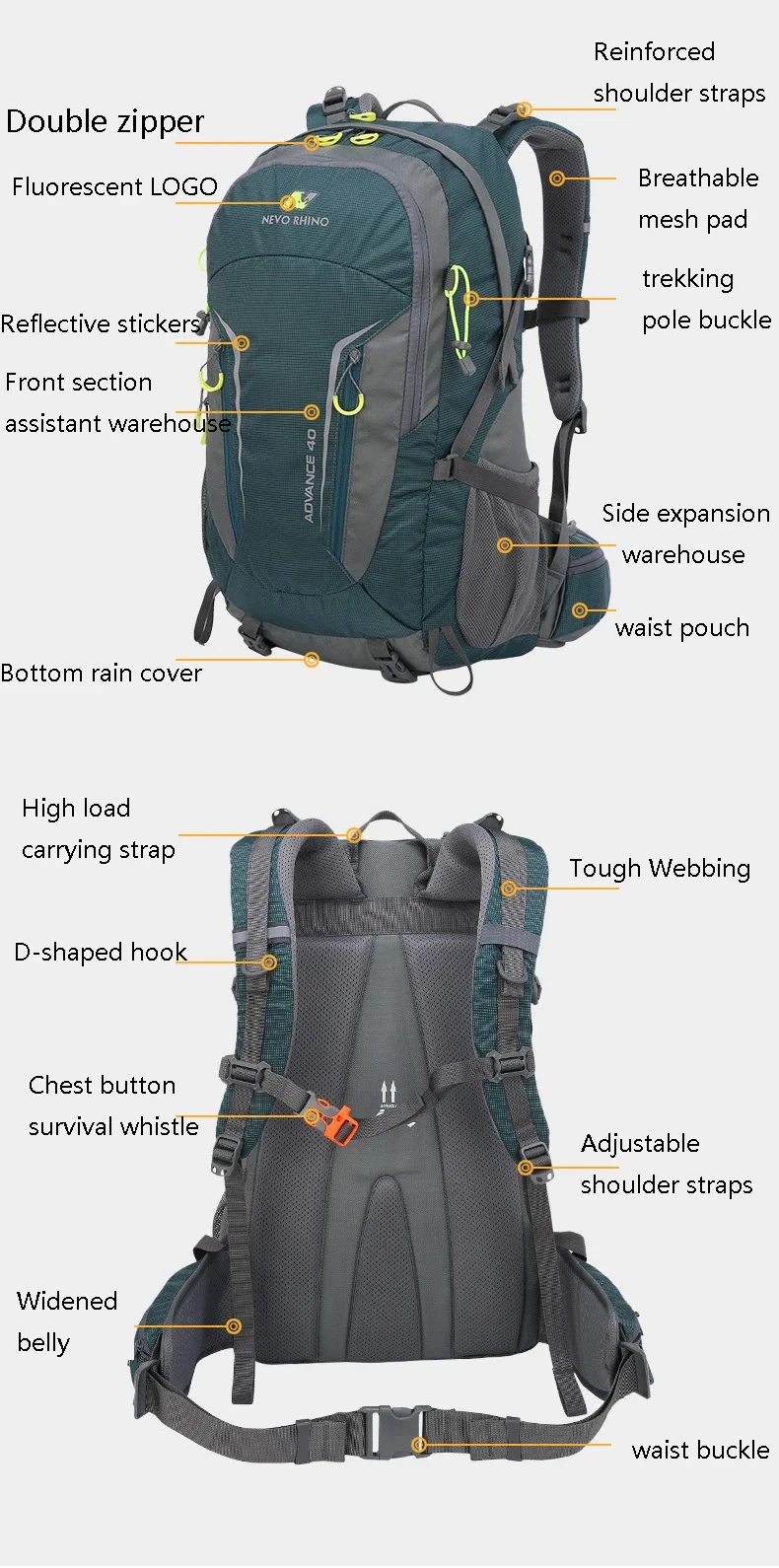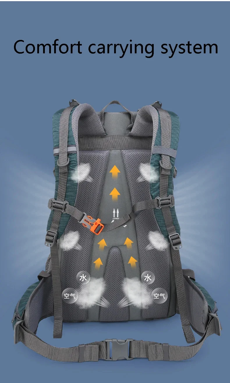 40L Men Unisex Outdoor Hiking Backpack Travel Sports Pack Fishing Bag Climbing Camping Rucksack For Male Women Female