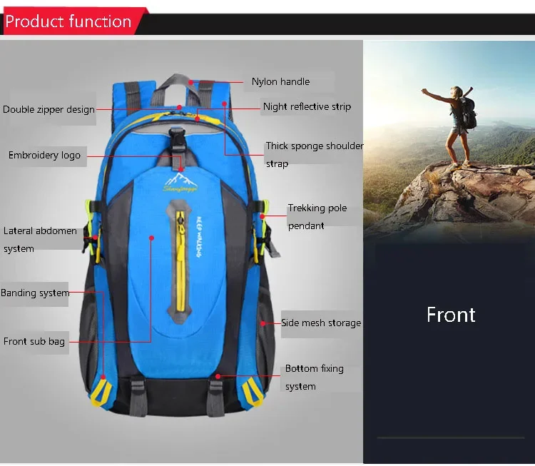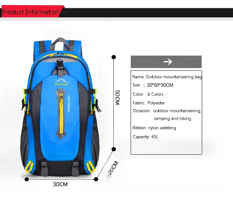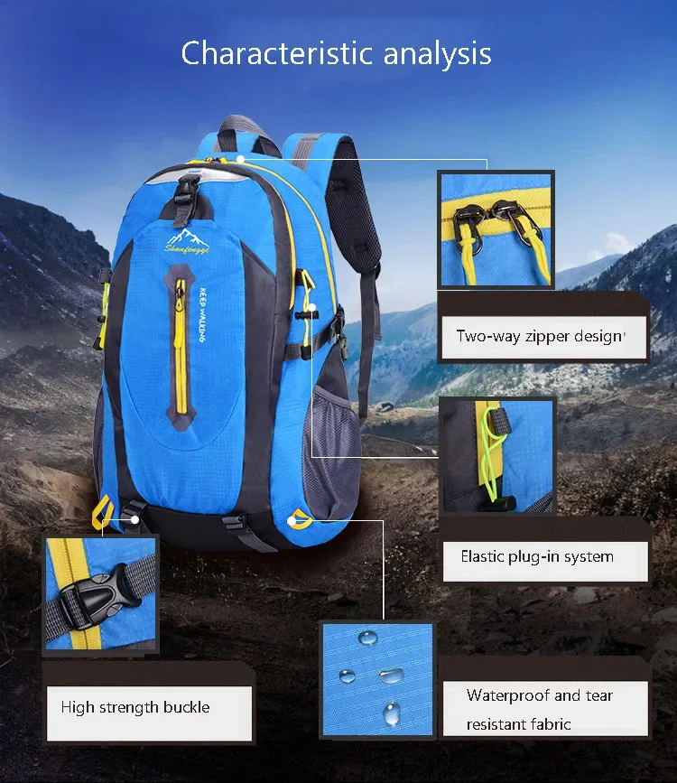 40L Unisex Men Backpack Waterproof Hiking Mountaineering Backpacks Outdoor Sports Travel Pack Camping Climbing Bag For Male 2024