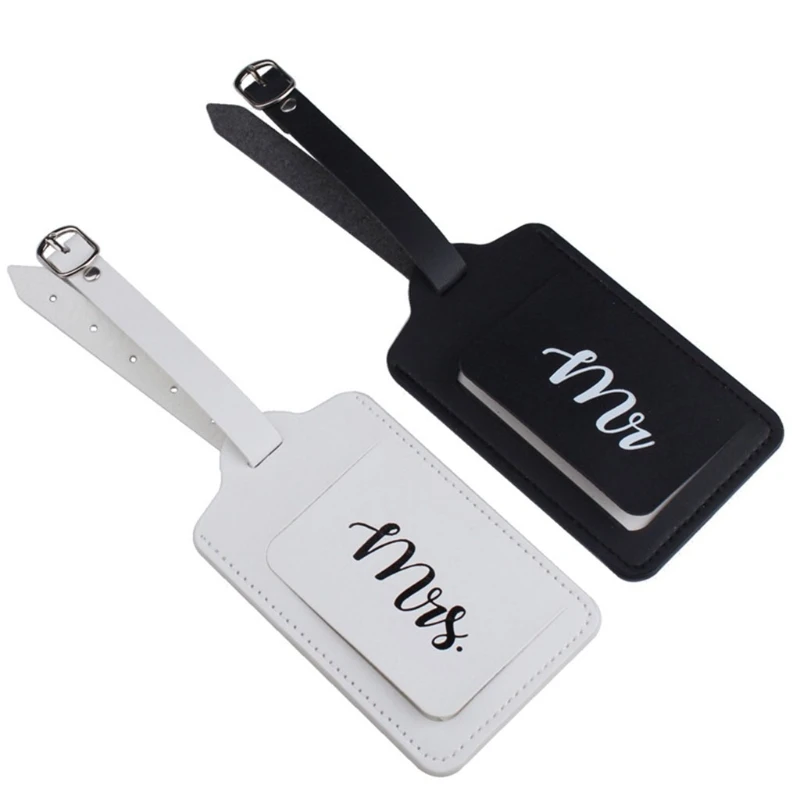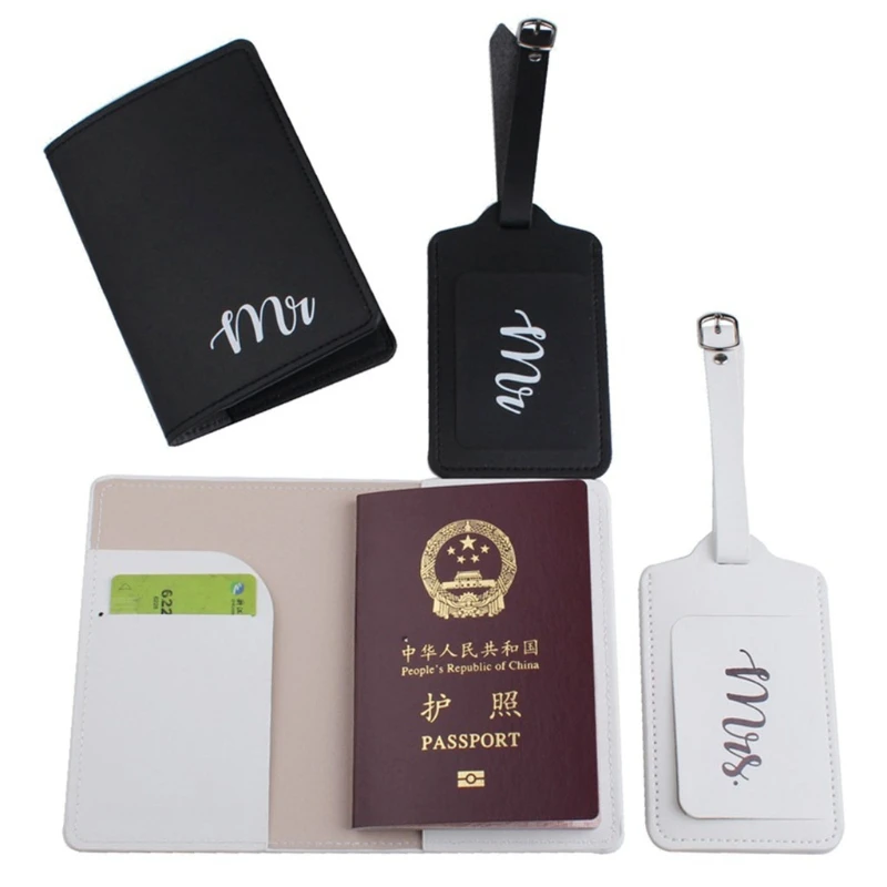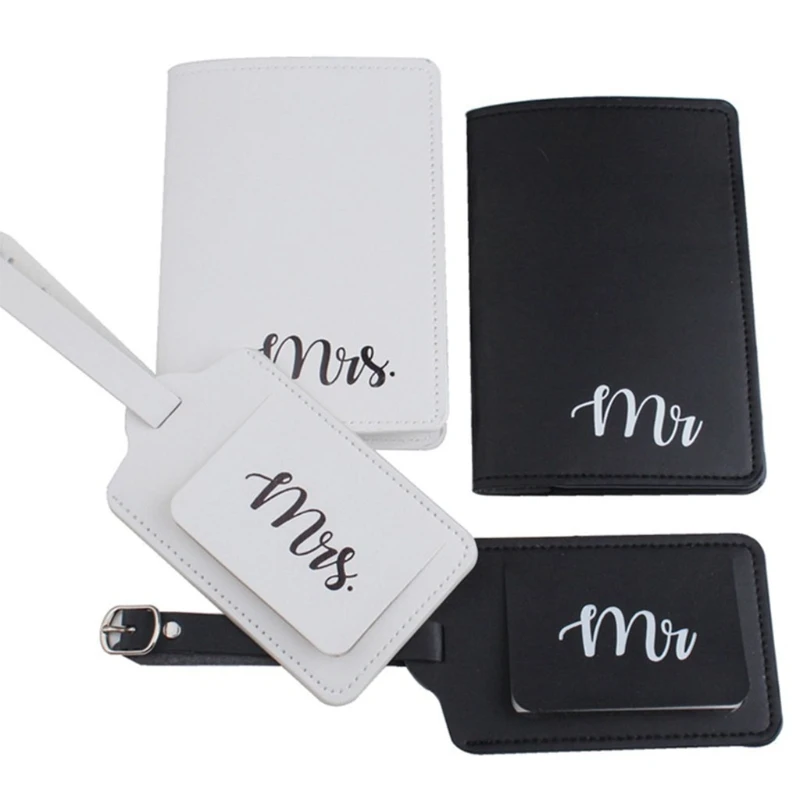 4Pcs PU Leather Mr Mrs Luggage Tags Passport Covers for Couples Travel Honeymoon