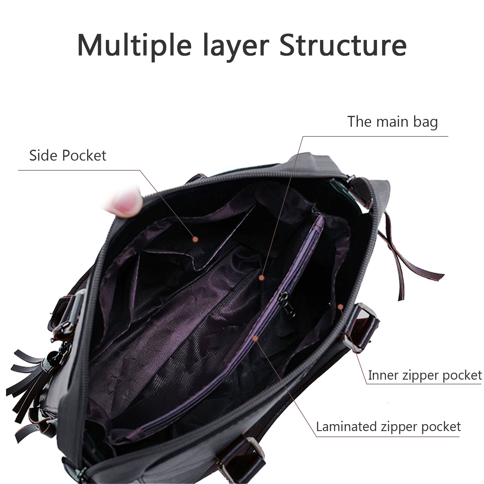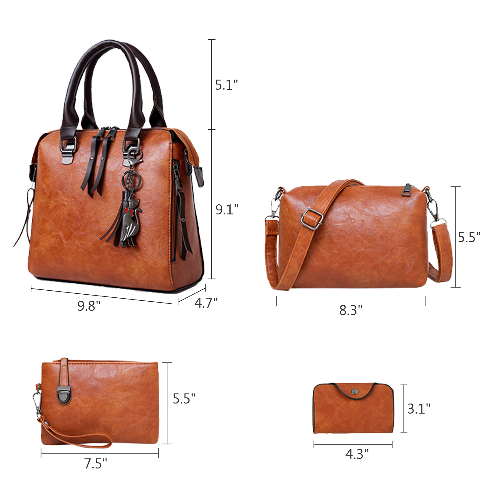 This set includes a Tote Handbag, a Messenger Bag , a Wallet clutch and a Card Holder to meet all your daily needs, It can be used as a handbag, a crossbody bag and also a single-shoulder bag.