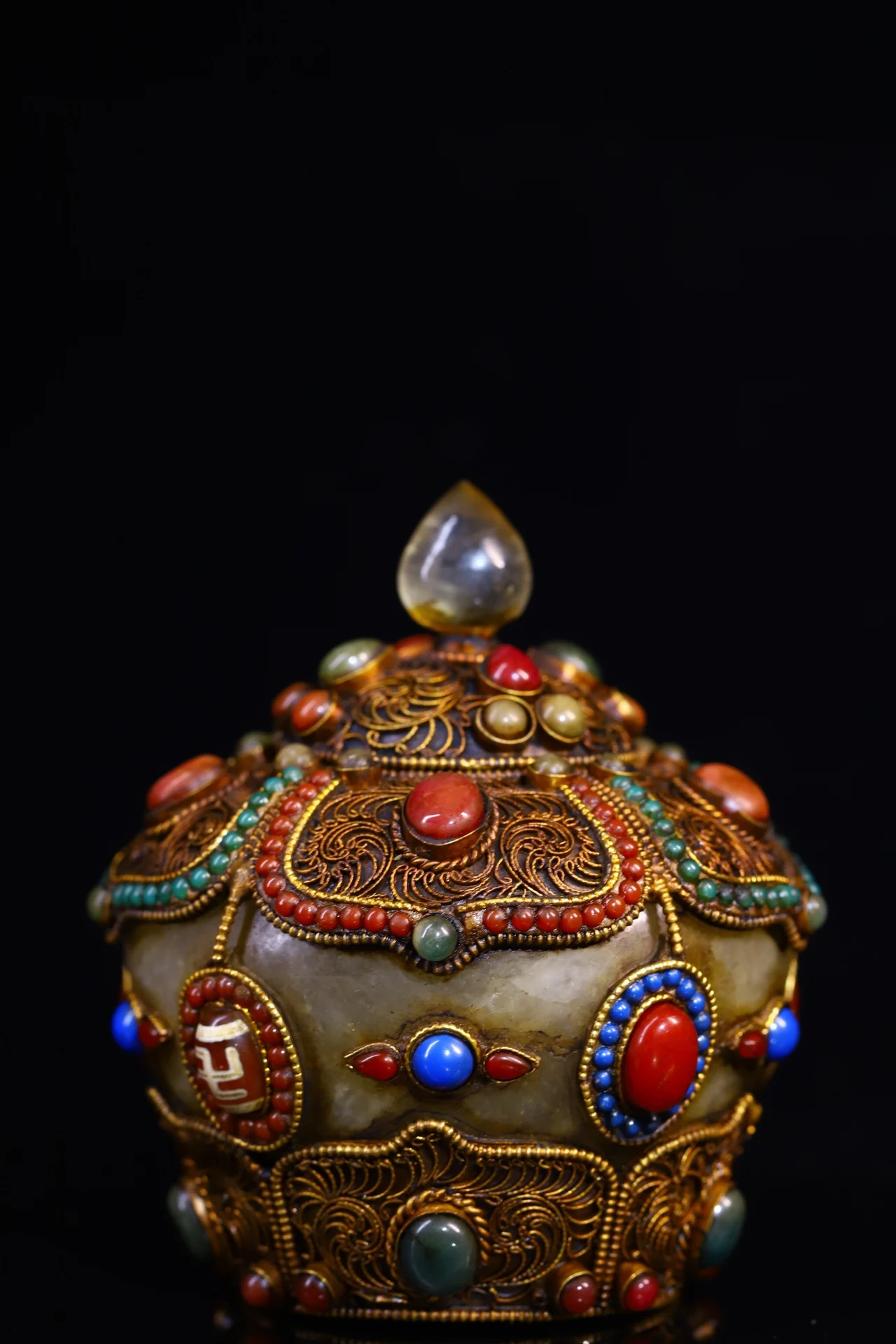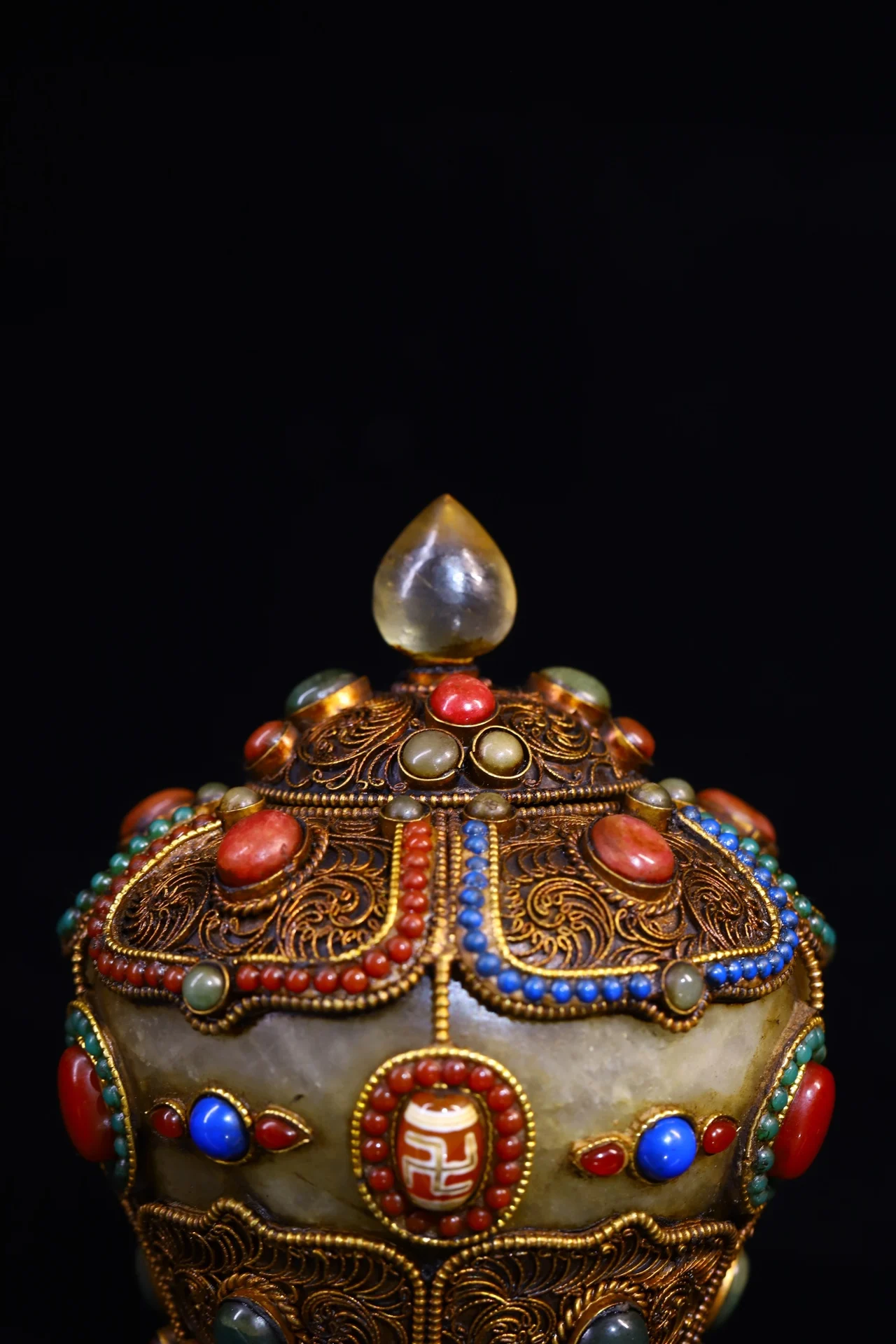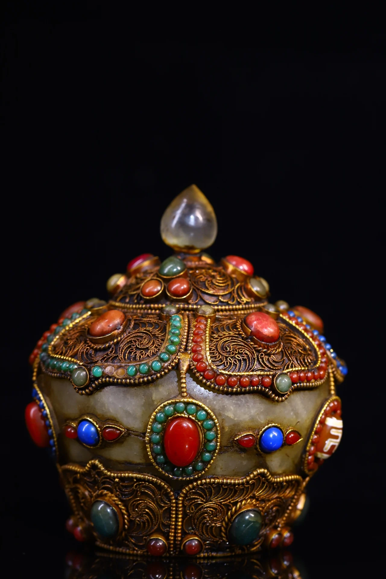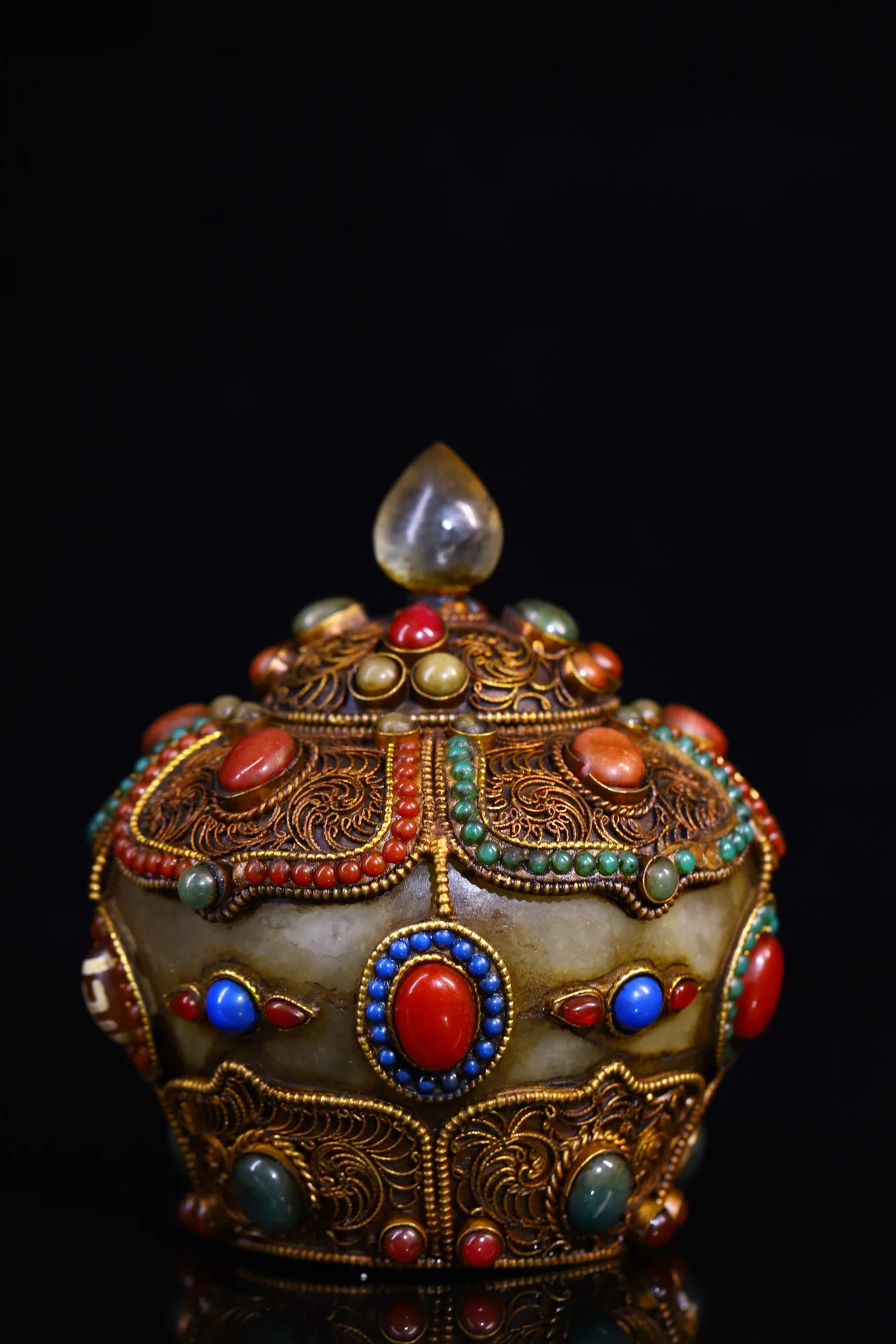 Materials: Old Natural Crystal Mosaic Gem Tibetan silver Gilt