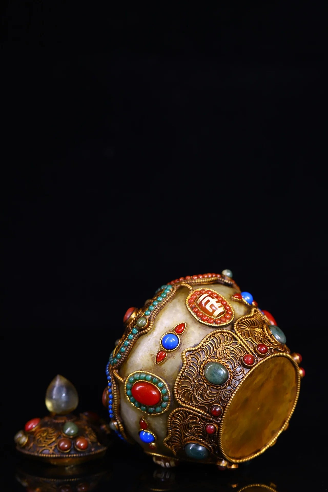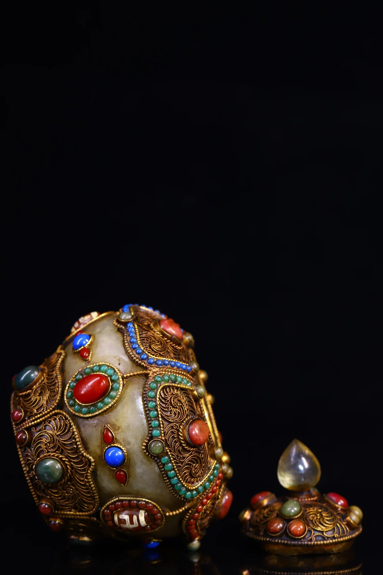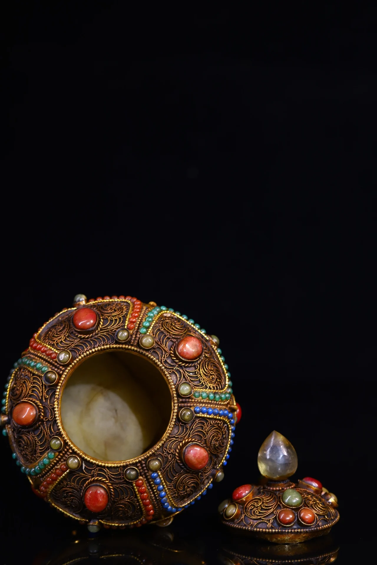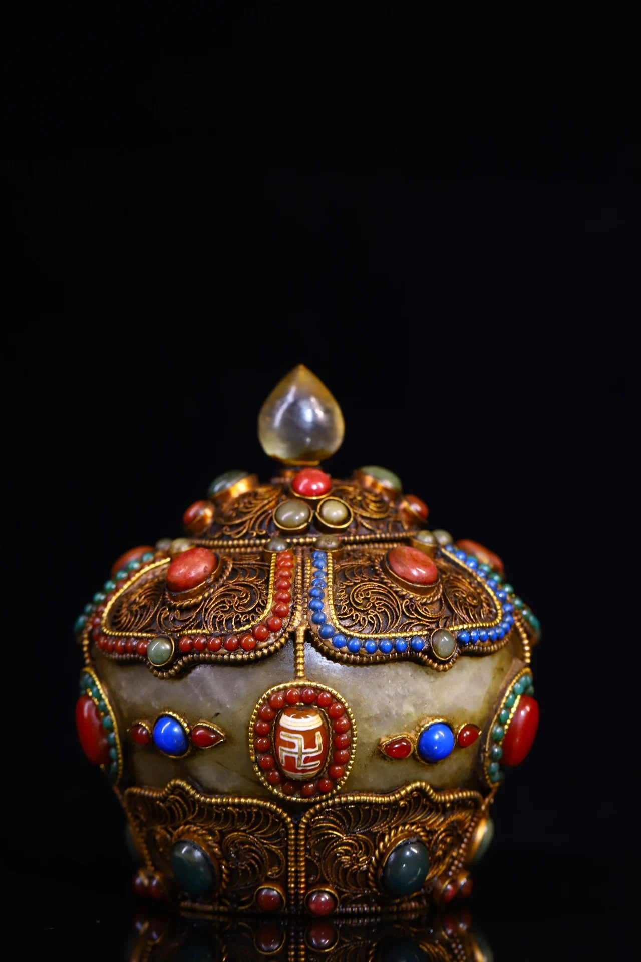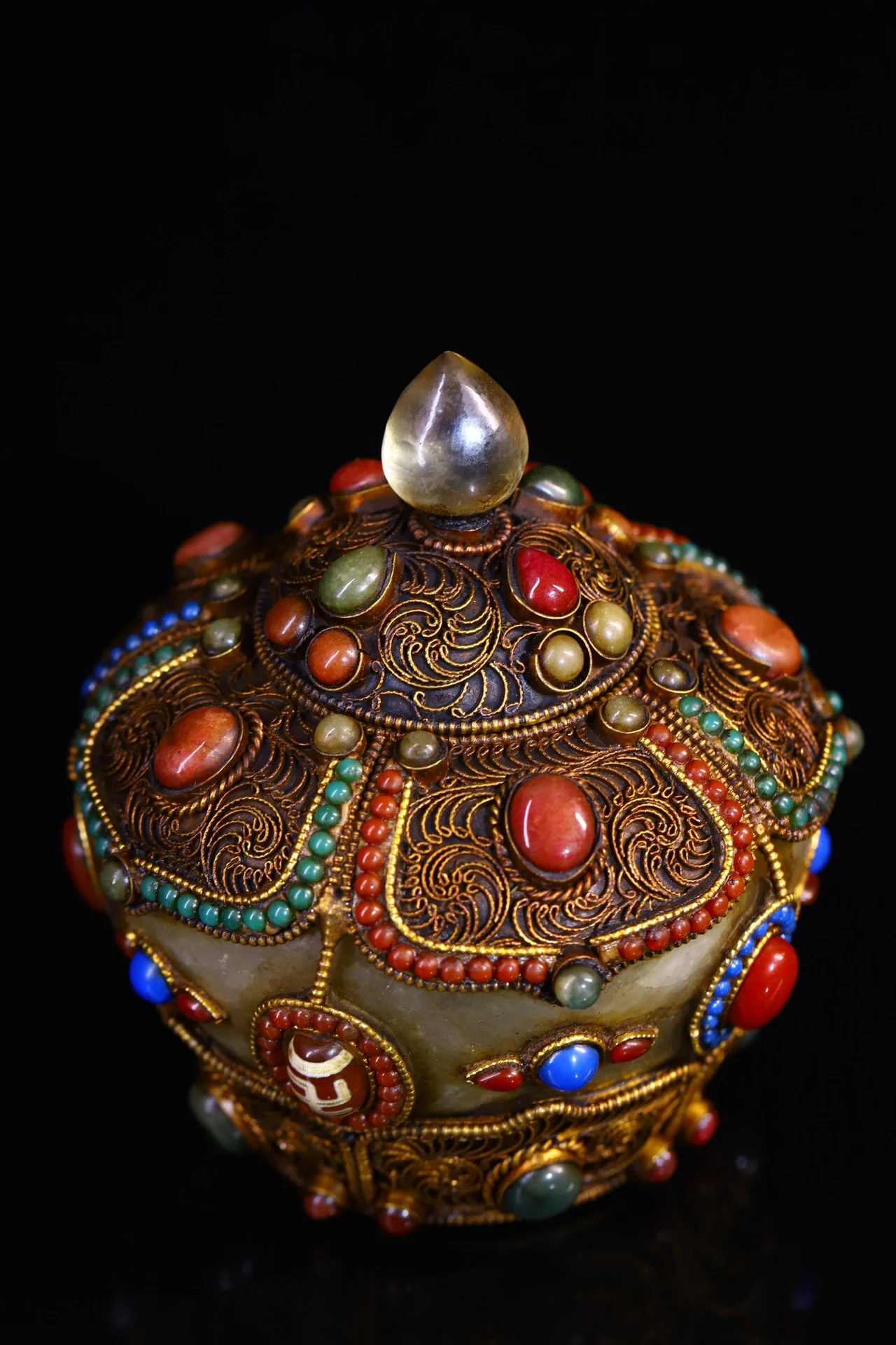 Materials: Old Natural Crystal Mosaic Gem Tibetan silver Gilt