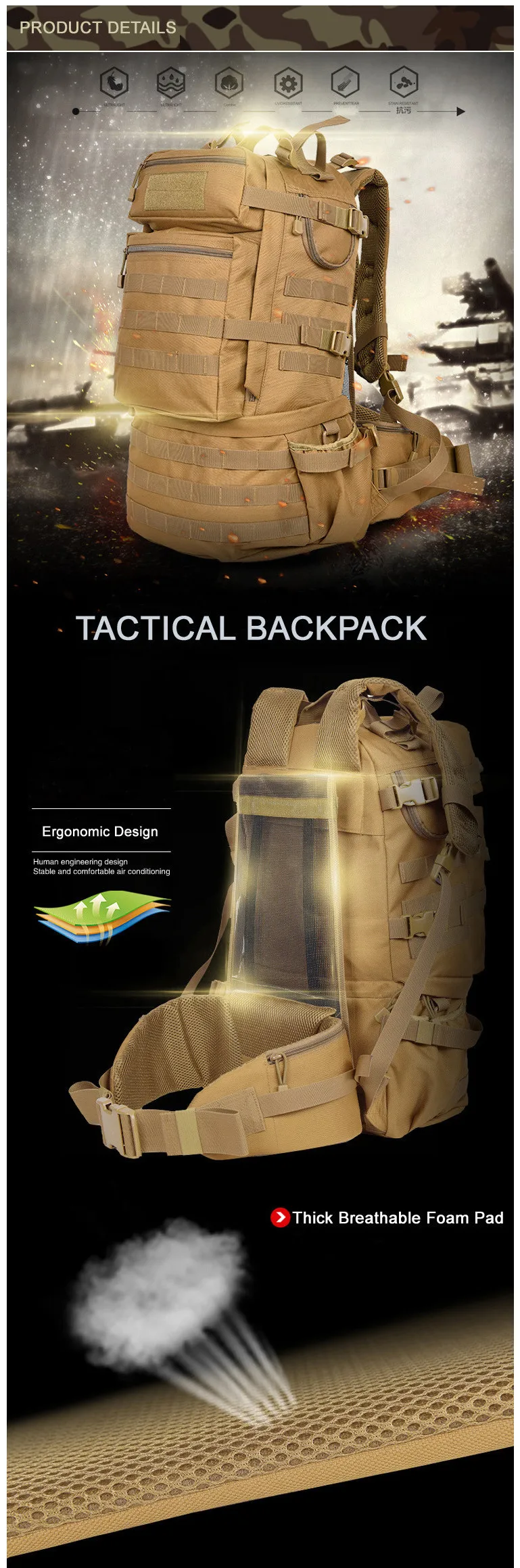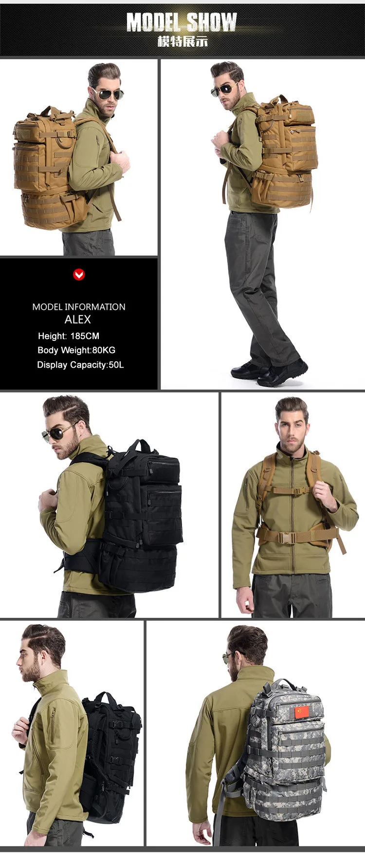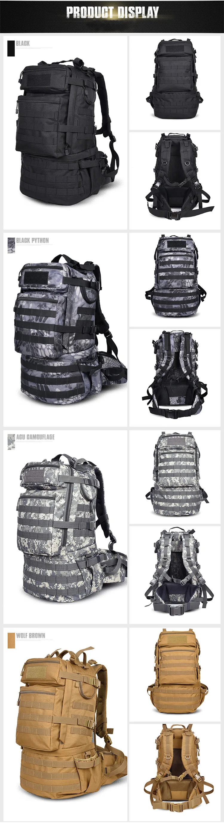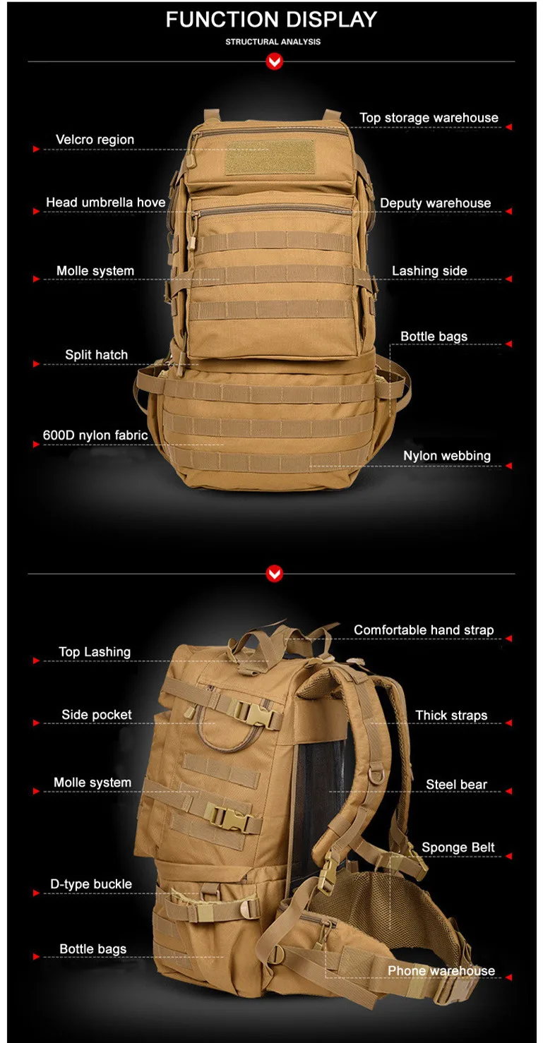 50 L Tactical Backpacks Men Outdoor Army Camping Hiking Travel Tactical Bags