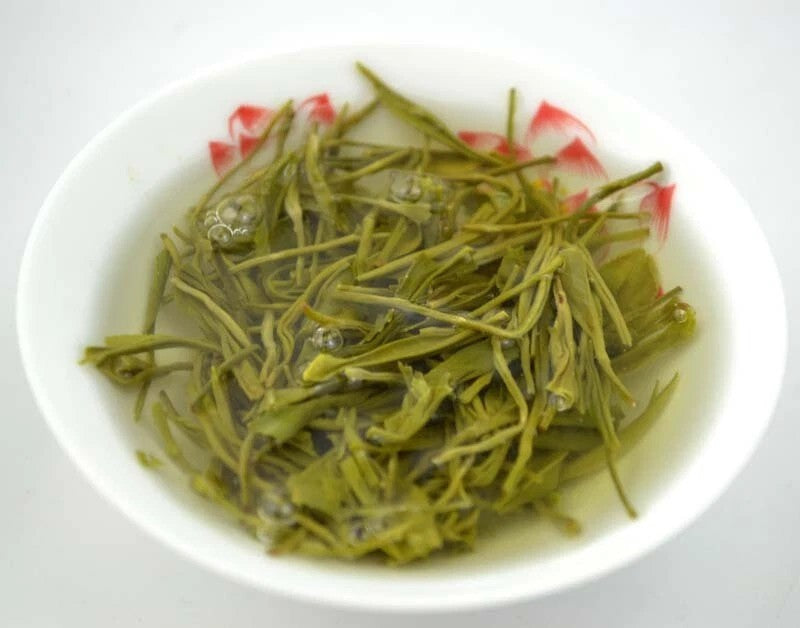 Appearance: Slender, tightly curled leaves with a嫩绿 (tender green) hue and visible white毫 (pekoe), resembling "sparrow tongues".
