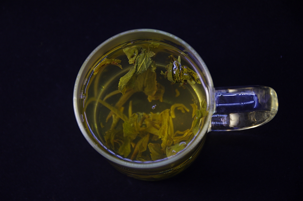 The water used to steep this tea should be about 160-180°F or 70-80°C. Use about 2 teaspoons (3 grams) of tea leaves for about every 5 ounces (150 milliliters) of water. A steeping time of about 3-5 minutes with more or less time is recommended depending on the desired concentration. As a rough guide, the hotter the water or the greater the amount of leaves used, the shorter the steeping time should be. The use of a covered glass or ceramic cup is recommended for steeping in order to appreciate the tea leaves.