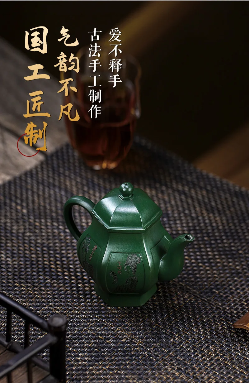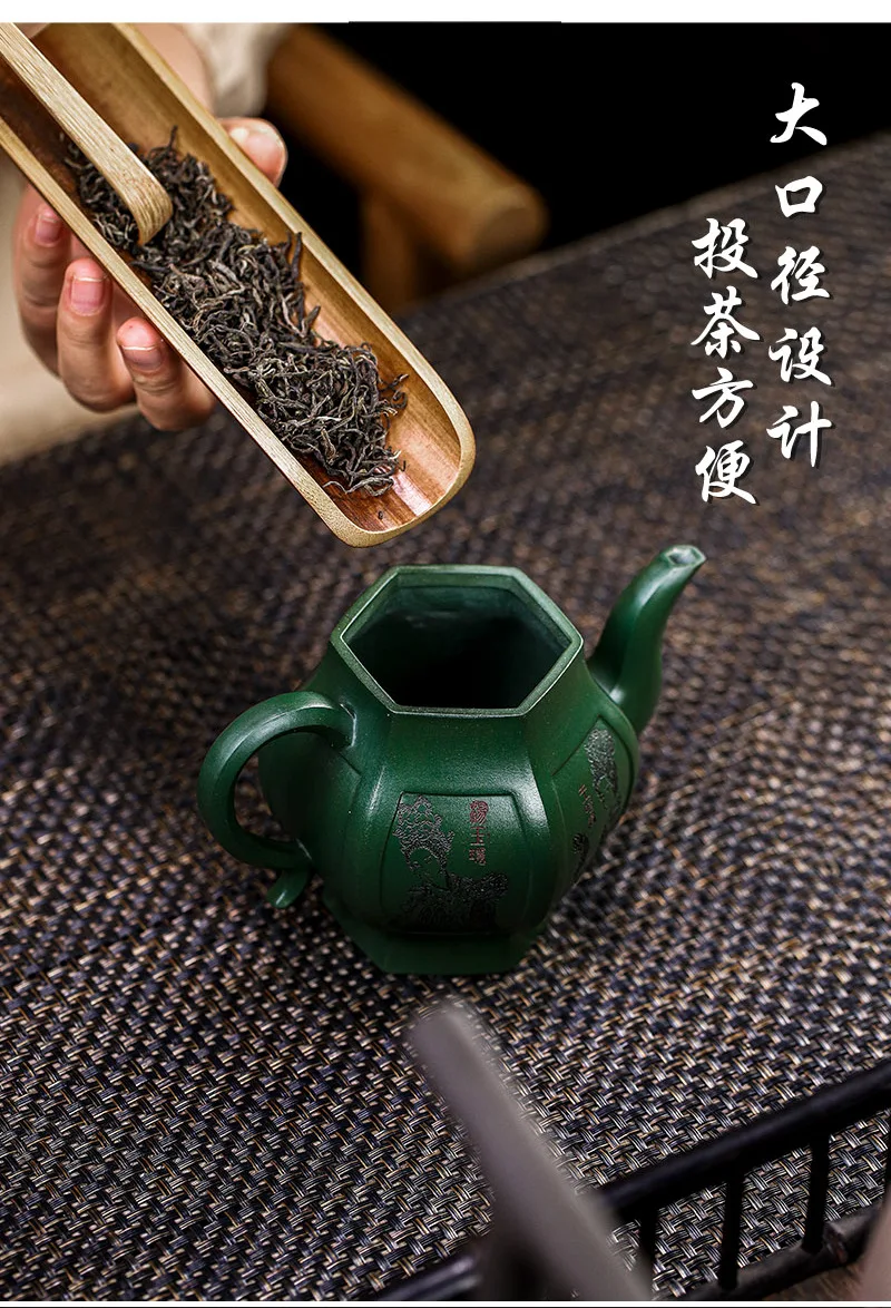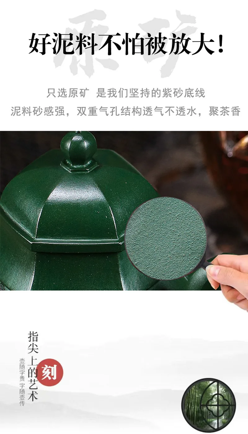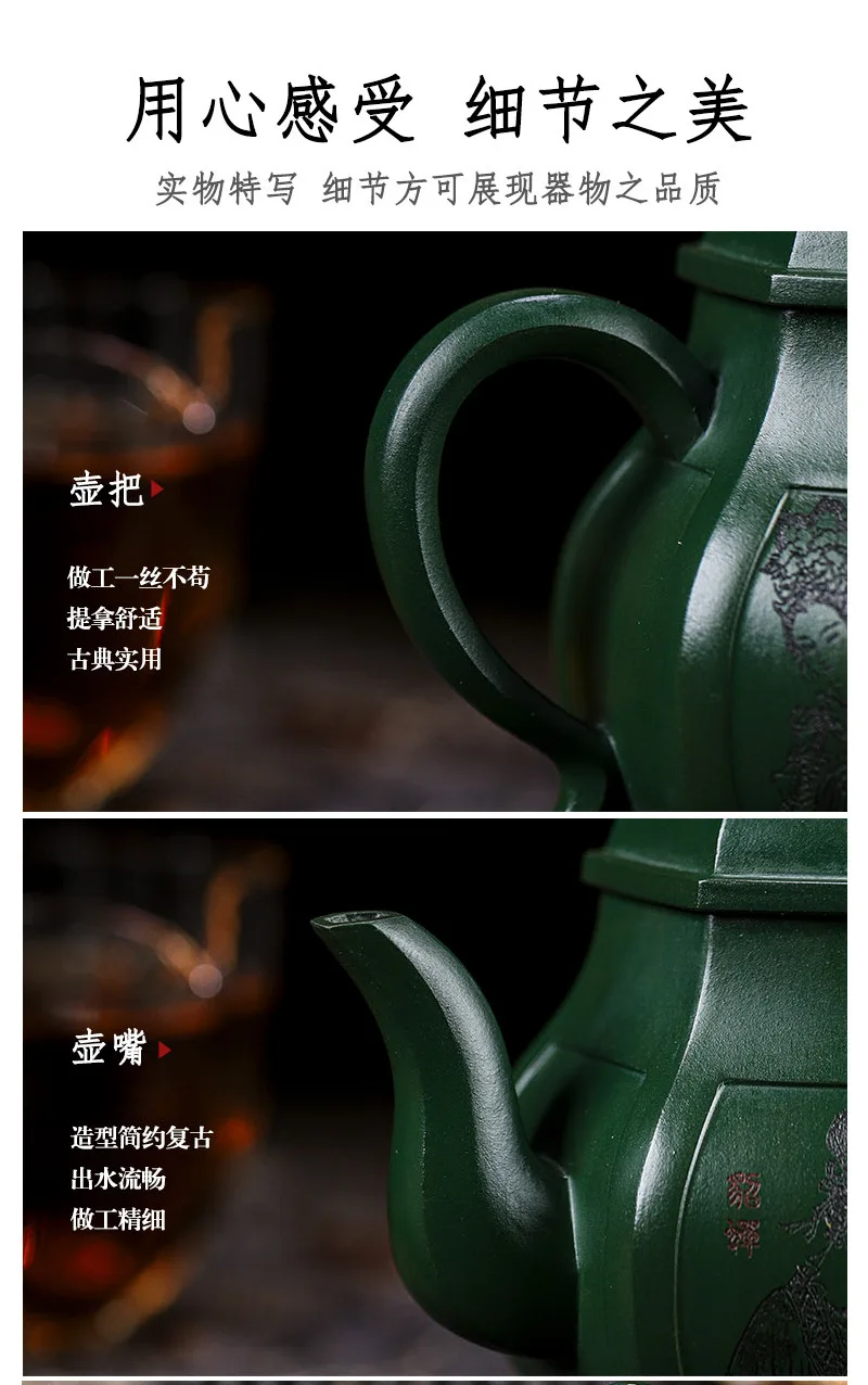 500ml High-end Chinese Yixing Raw Ore Green Clay Zisha Tea Pots Handmade Household Kung Fu Tea Set Tea Ceremony Accessories Gift