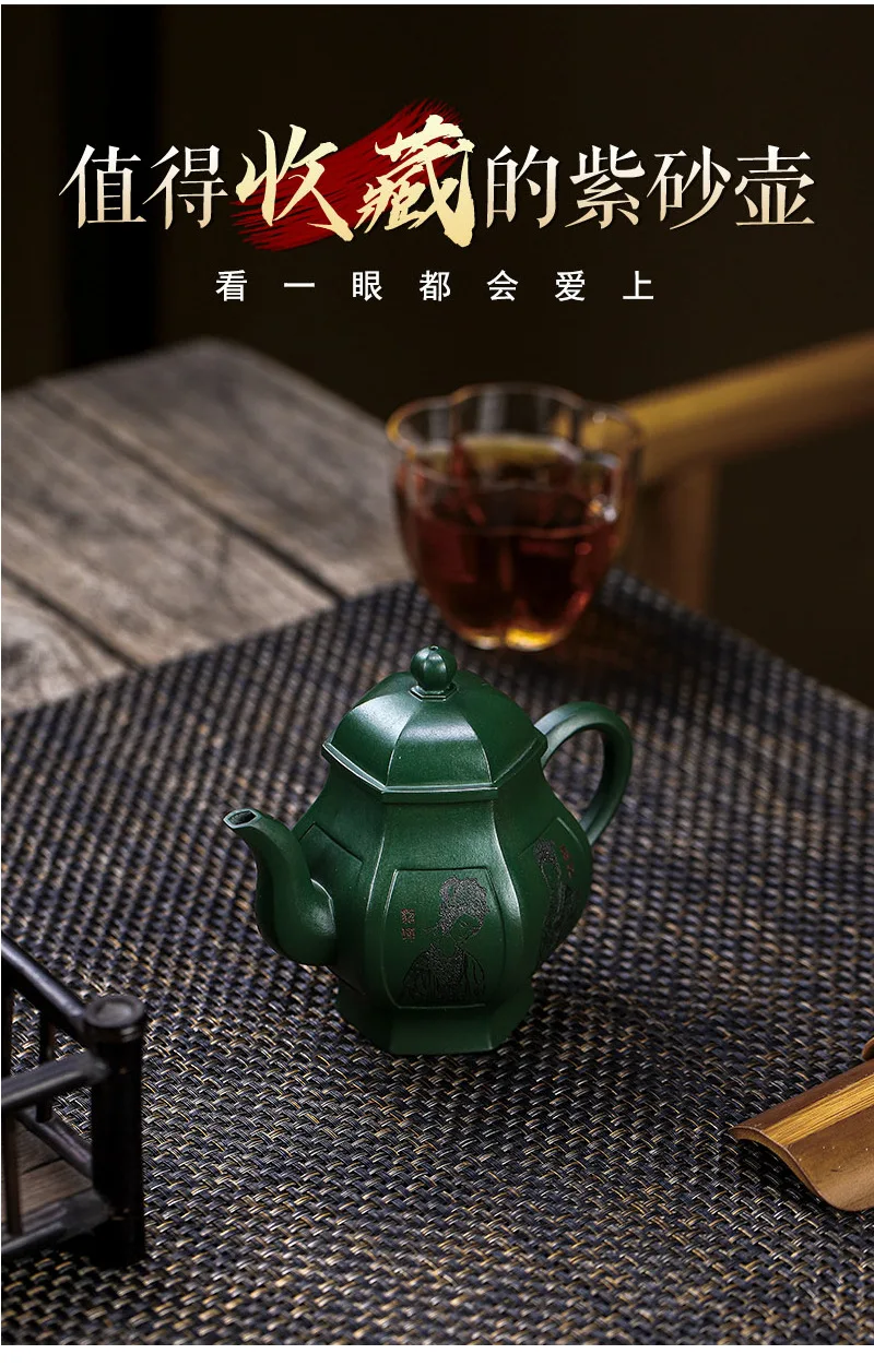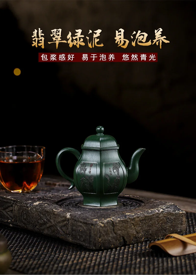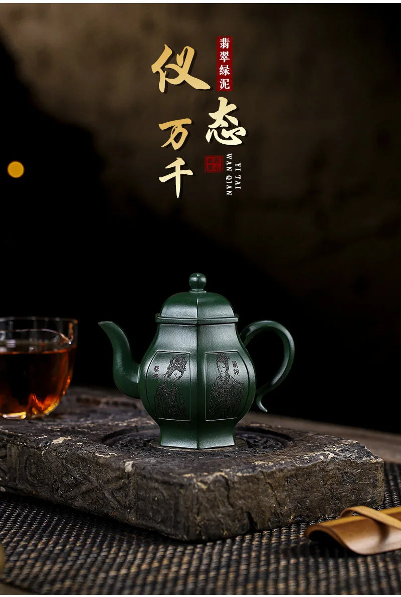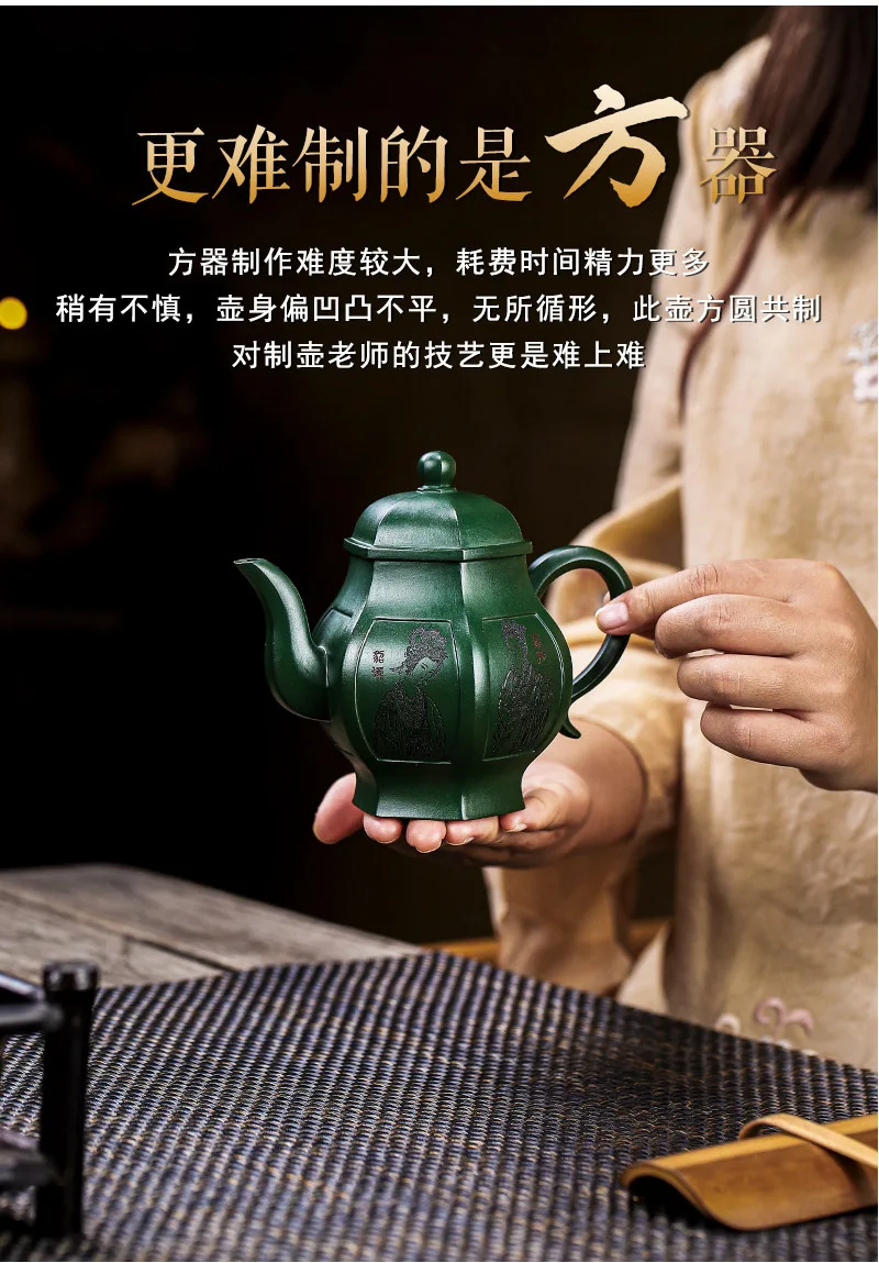 500ml High-end Chinese Yixing Raw Ore Green Clay Zisha Tea Pots Handmade Household Kung Fu Tea Set Tea Ceremony Accessories Gift