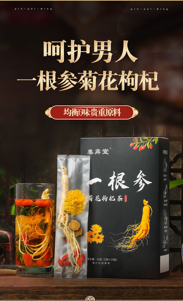 50g One Ginseng Chrysanthemum Wolfberry Tea One Whole Ginseng Tea Men's Tea