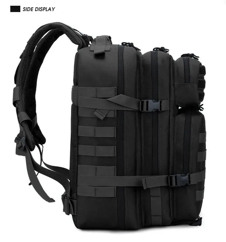 Size Information: Color: Black / Green / Khaki Large Capacity: 50L capacity, this pack has room for all of your essential gear. 900D encrypted waterproof oxford cloth Military grade backpack is made from 900D polyester material, tactical assault backpack is reinforced and double stitched at all stress points.
