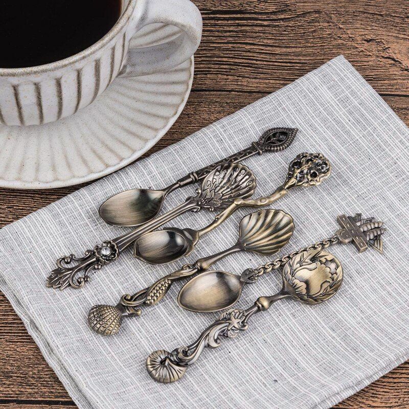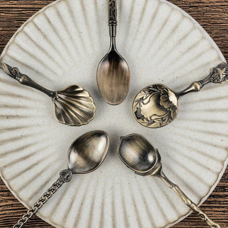 5Pcs/Set Vintage Style Metal Carved Small Mini Coffee Tea Spoon Kitchen Flatware