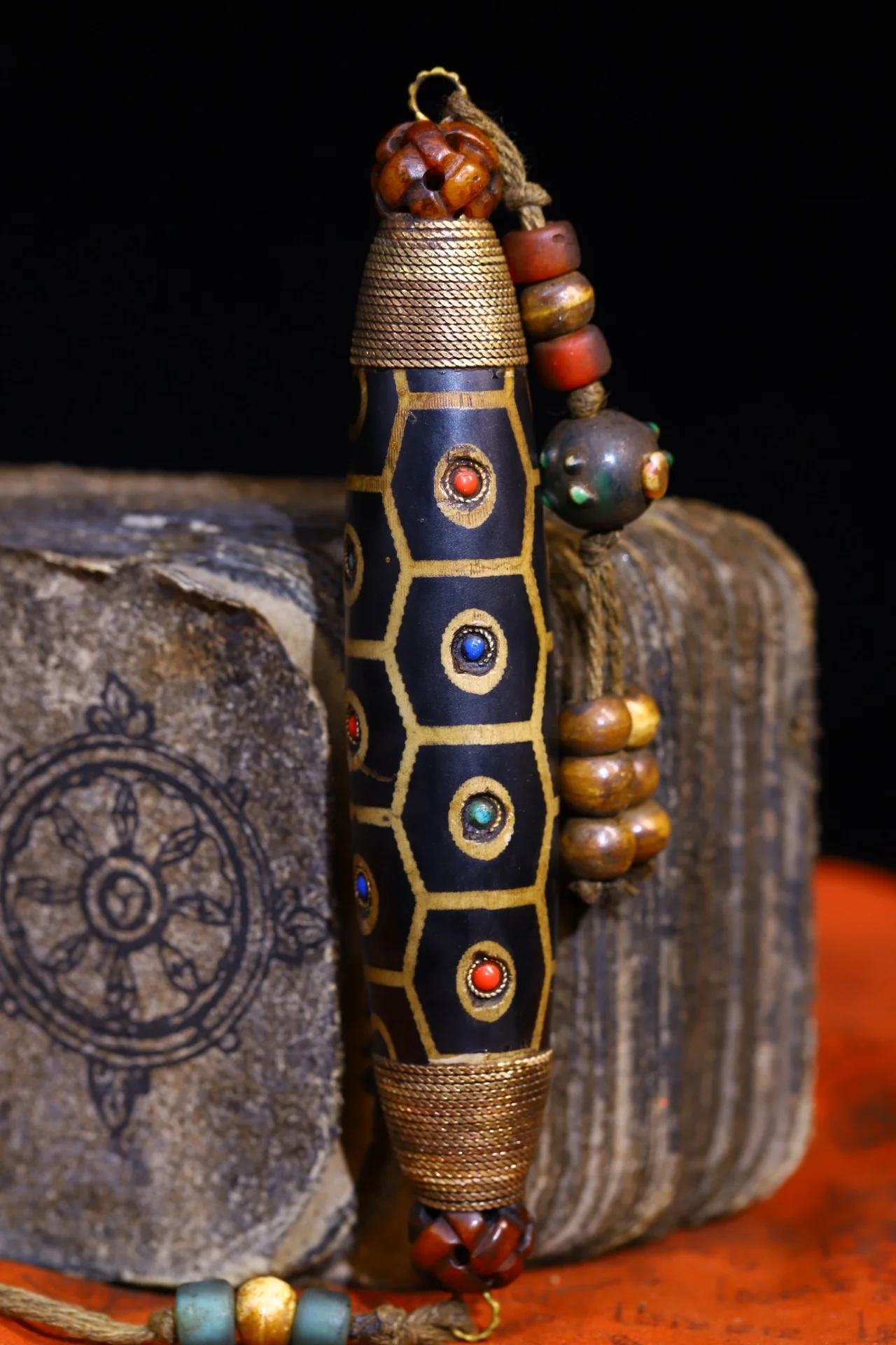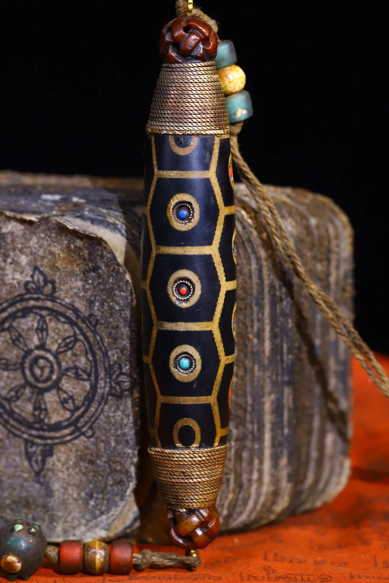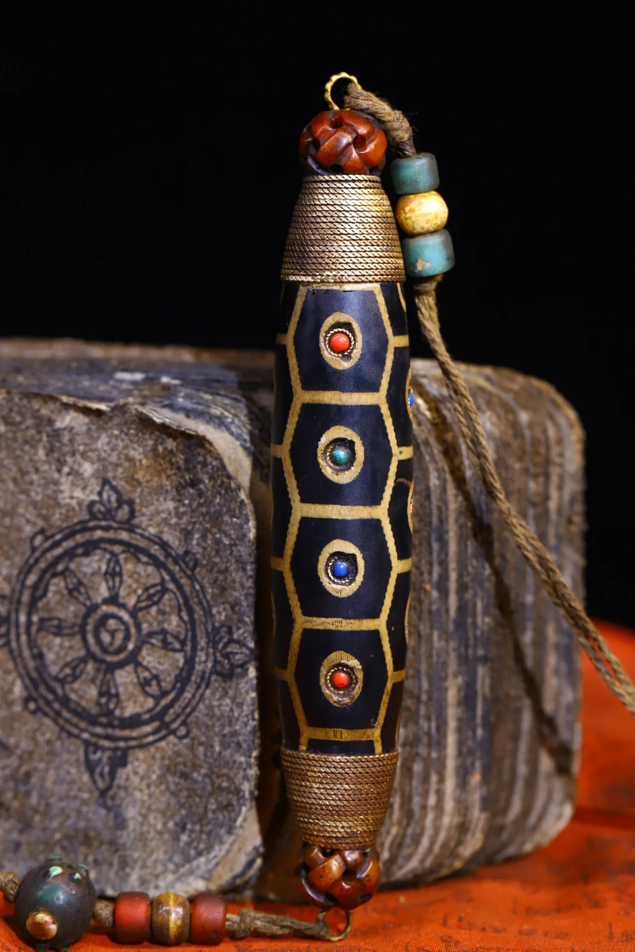 Materials: Old Natural Agate mosaic Gem gZi Beads Buddha BeadsTibetan silver gilding filigree