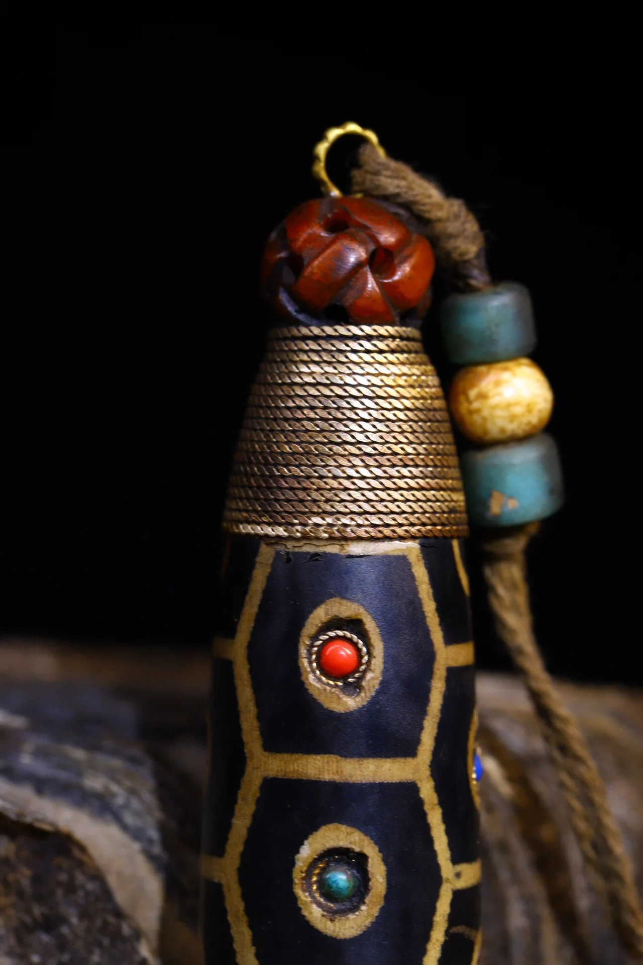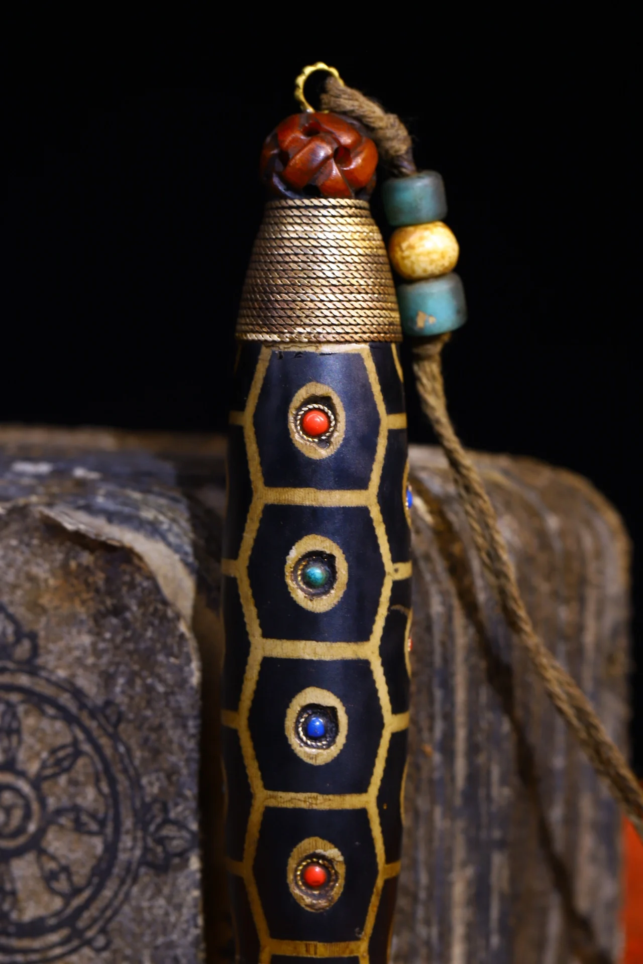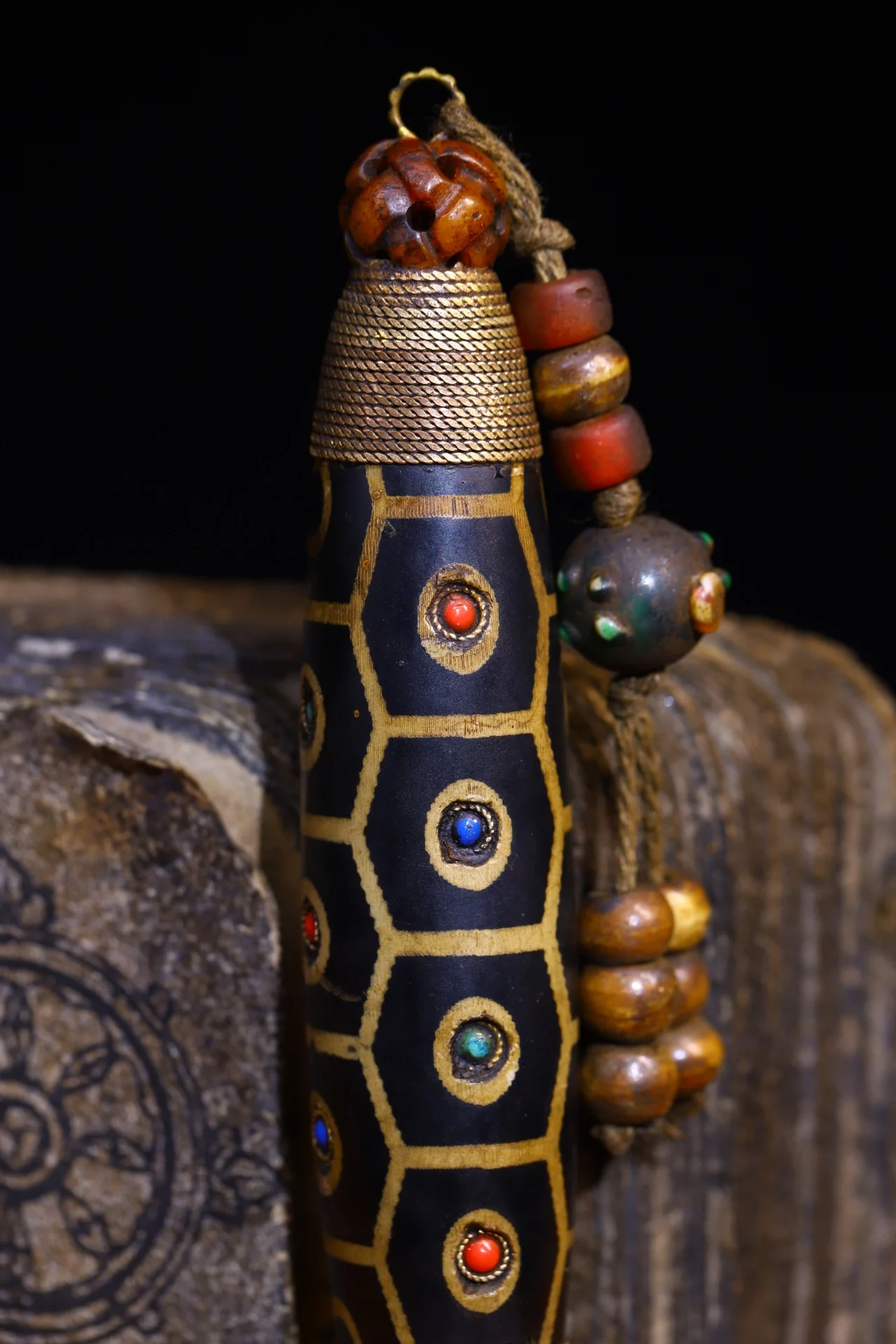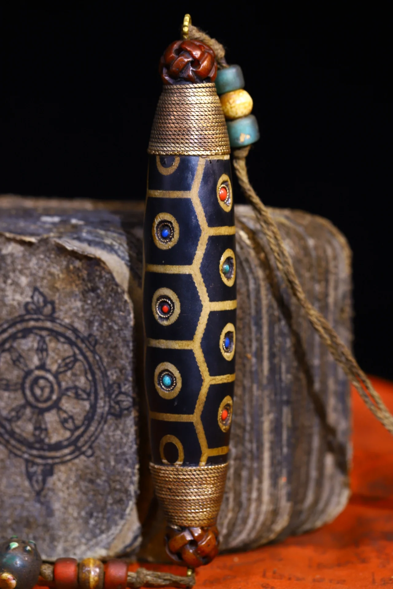 Materials: Old Natural Agate mosaic Gem gZi Beads Buddha BeadsTibetan silver gilding filigree