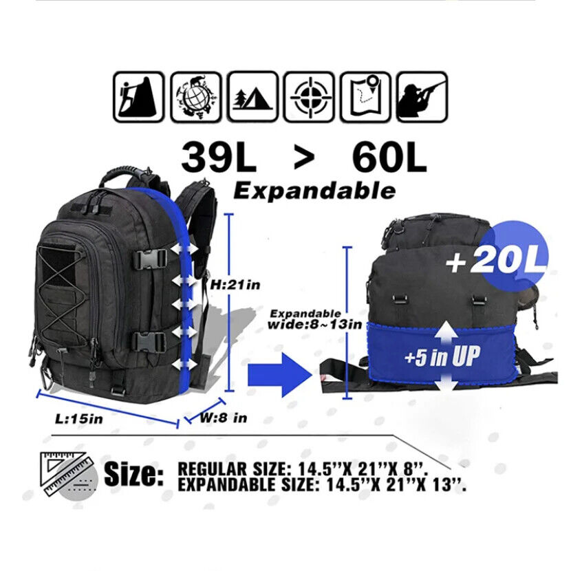 60L 25L Tactical Backpack for Men Travel Hiking Camping Trekking Outdoor Bag Men's Notebook Waterproof Black Military Backpacks