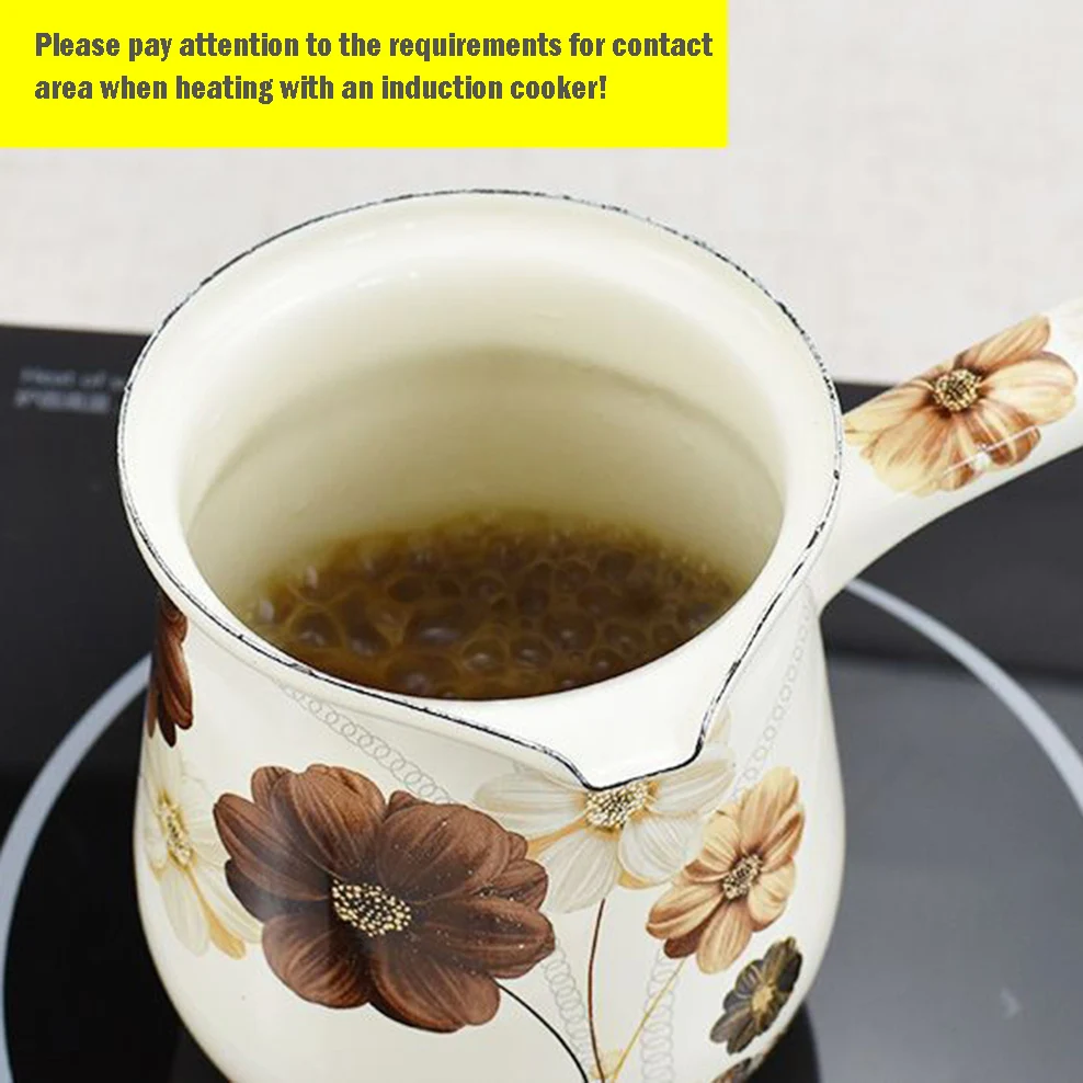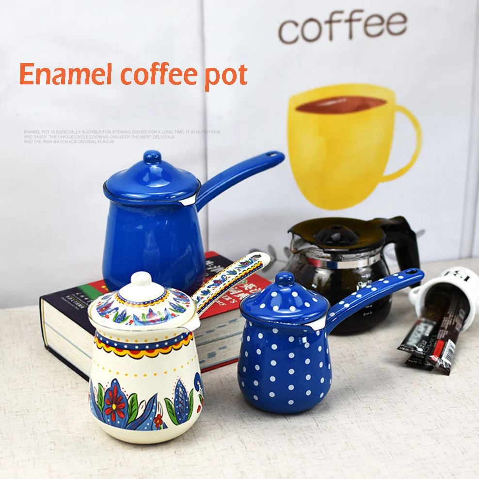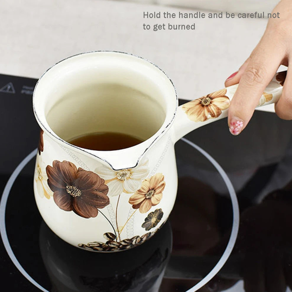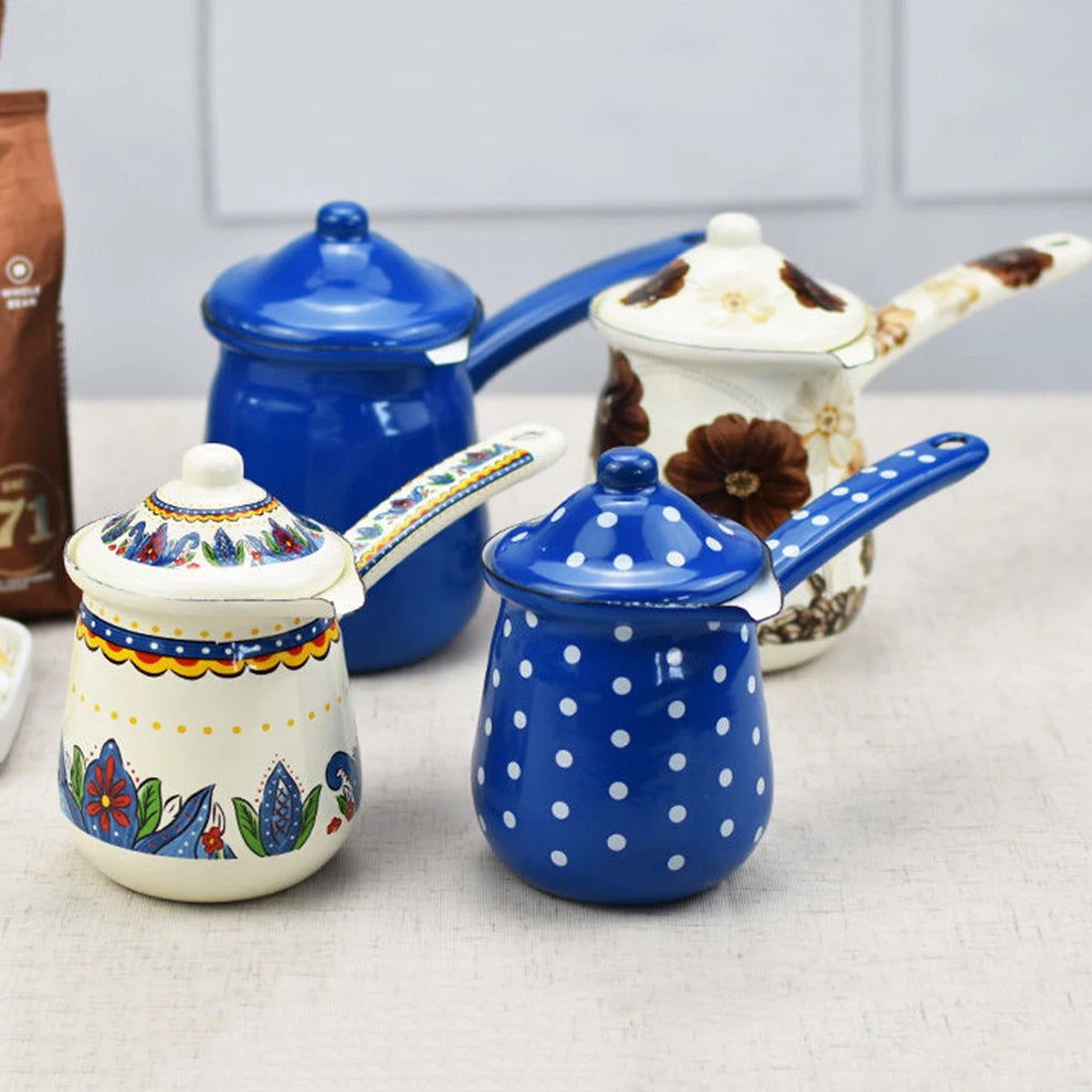 Enamel Small Milk Pot Long Handle Butter Melting Bucket English Coffee Milk Cup Mini Brew Coffee Bucket Milk Heating Pot