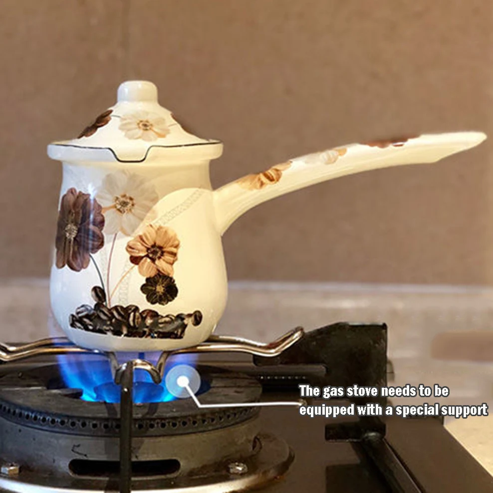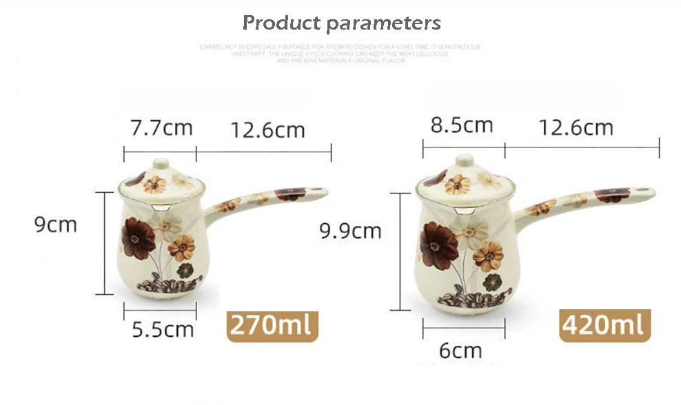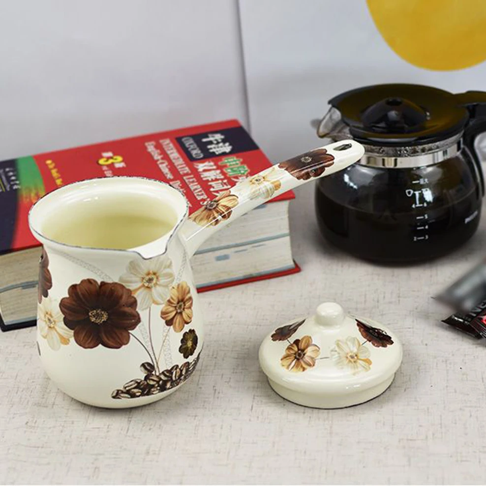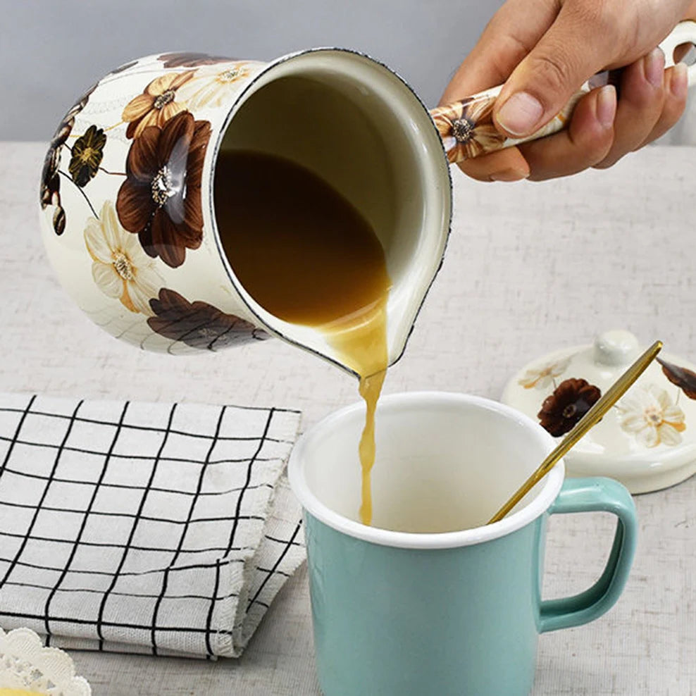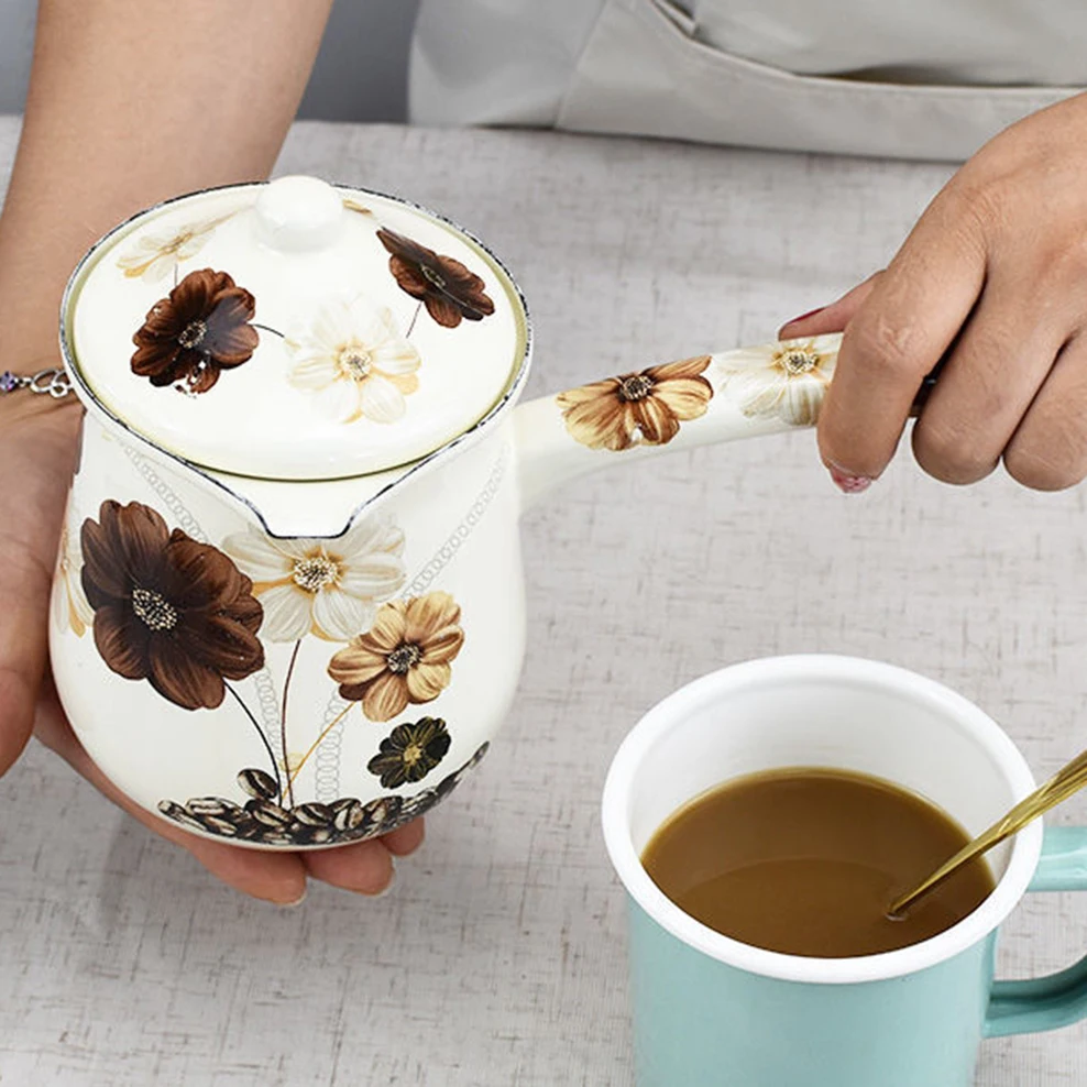 Enamel Small Milk Pot Long Handle Butter Melting Bucket English Coffee Milk Cup Mini Brew Coffee Bucket Milk Heating Pot
