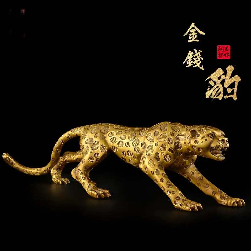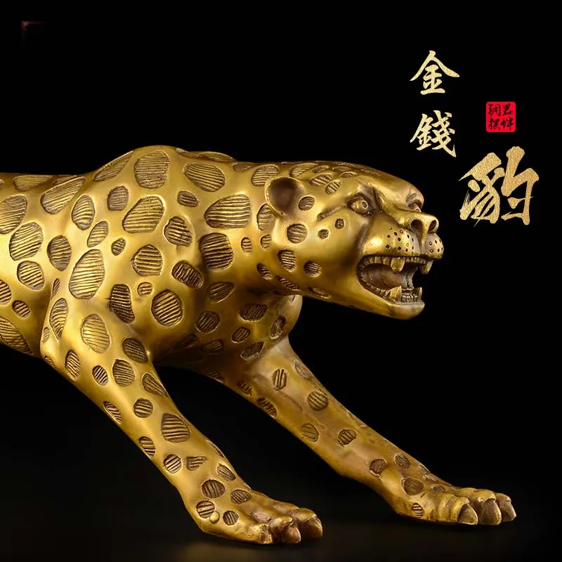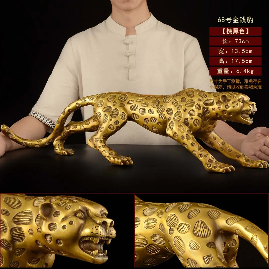73CM Huge large TOP Decoration art HOME Company shop Dubai Auspicious COPPER GOOD Luck Money leopard Panthera pardus Sculpture