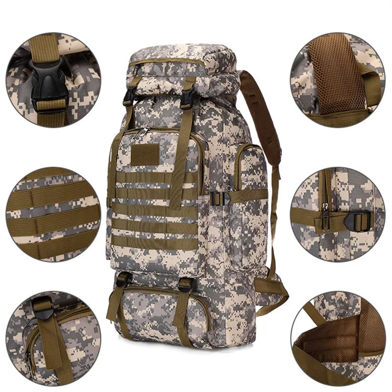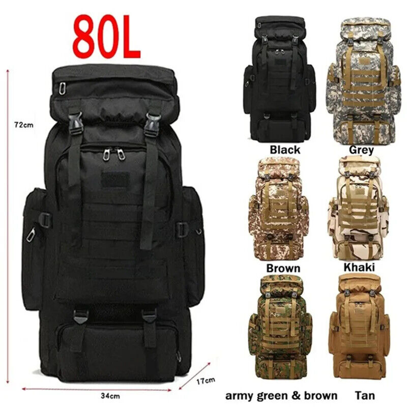 80L Tactical Backpack Army Hiking Camping Backpack Travel Sports Climbing Bag