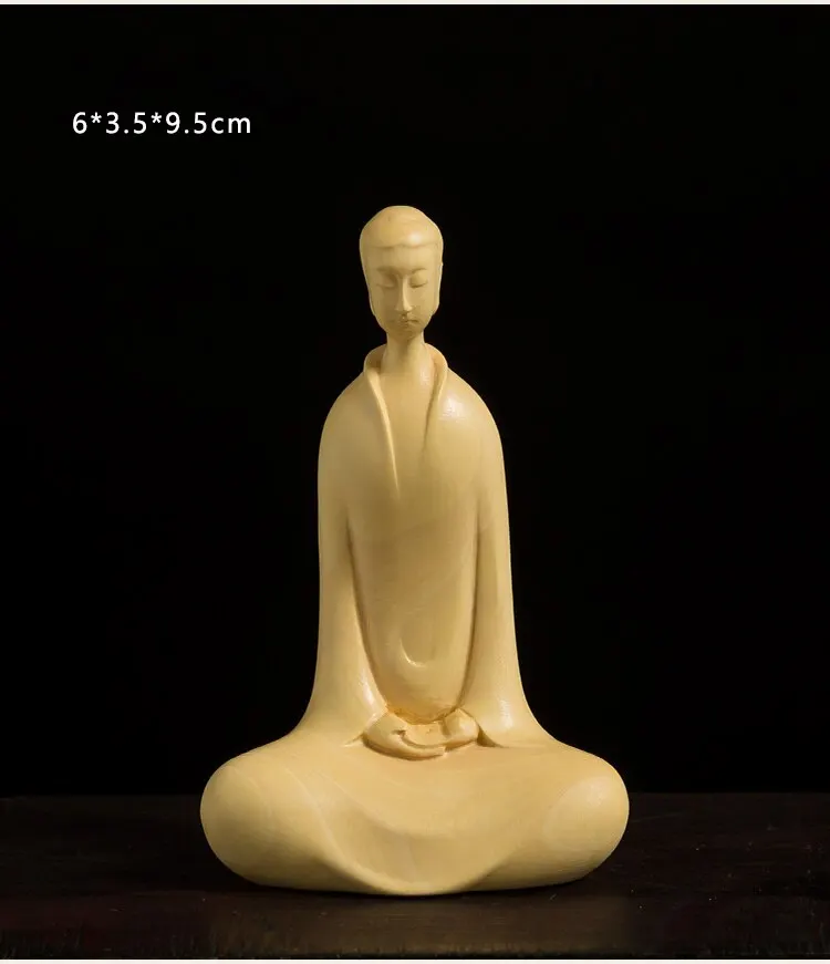 9/10/16CM Zen Tao Wood Sculpture Boxwood Feng Shui Home Tea Ceremony Wooden Buddha Statue Home Decor