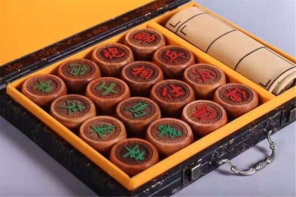 Chinese Chess, Xiangqi, Complete Set with PU Board, 1.9 Inch Burma Rosewood Pieces