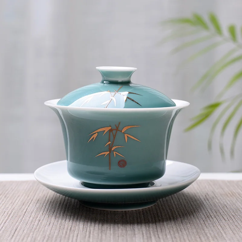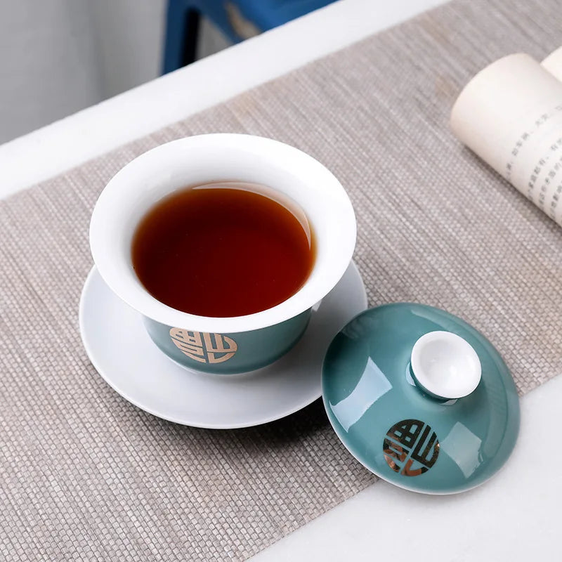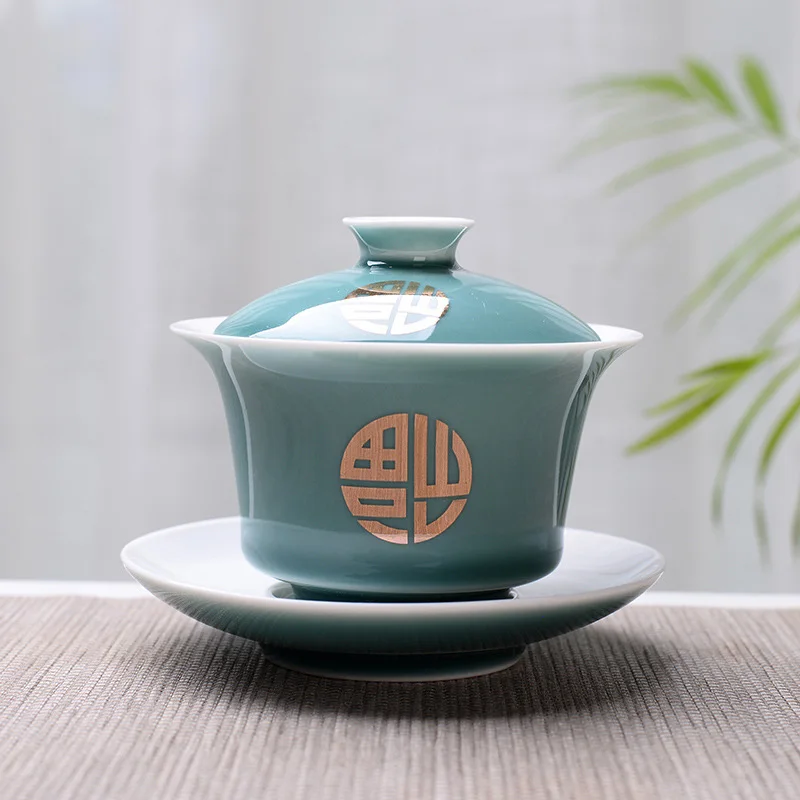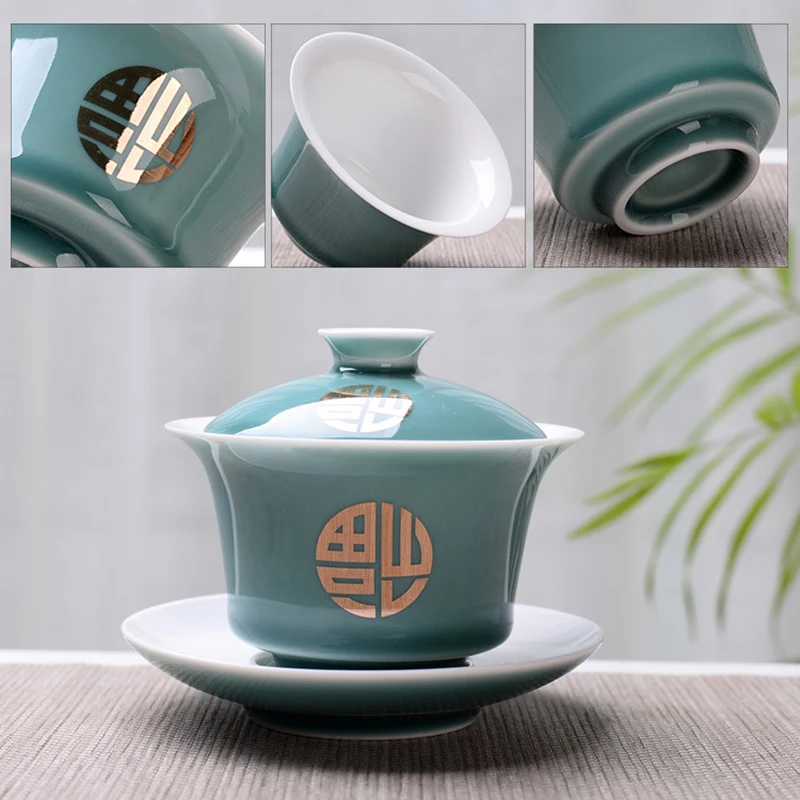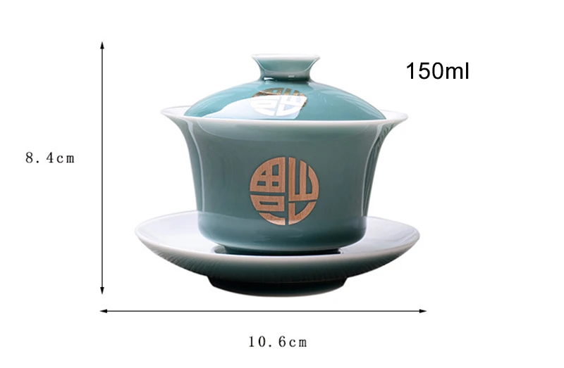 Advanced Obsidian Tea Tureen 150ml KungFu Tea Set,Chinese Kung Fu Flower Gaiwan Puer Kettle,Teapot lovers must have