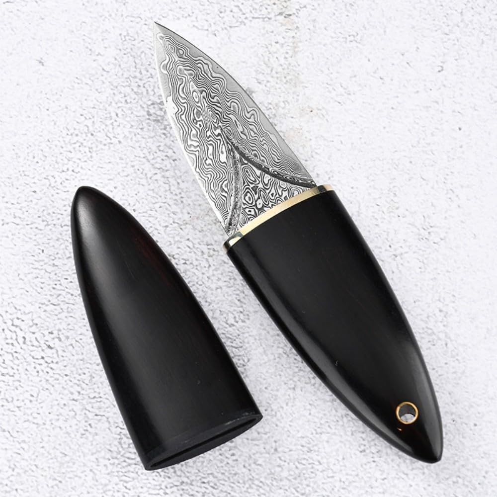 Aibote VG10 67 Layers Damascus Stainless Steel Fruit Knife,Kitchen Paring Knife,Home Puer Puerh Tea Knife Needle Outdoor Portable Multi-purpose Tool With Ebony Wood&Sheath