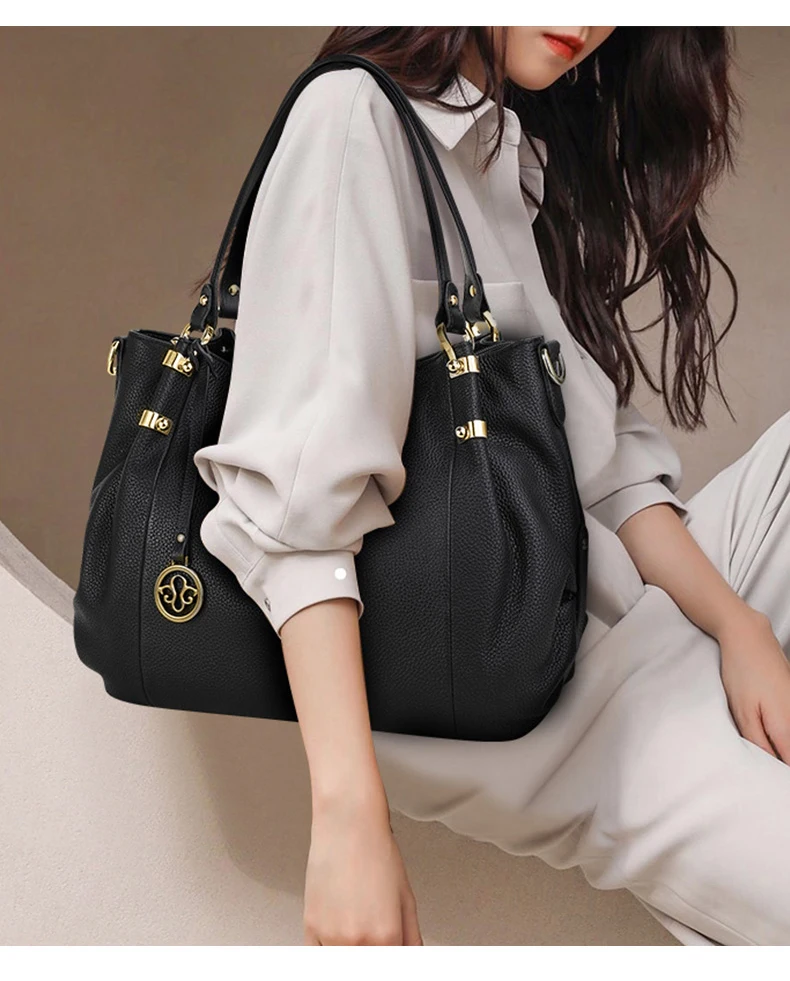 Aidran 2024 Fashion genuine leather bag handbag large capacity luxury women's shoulder bag 100% soft cowhide tote bag