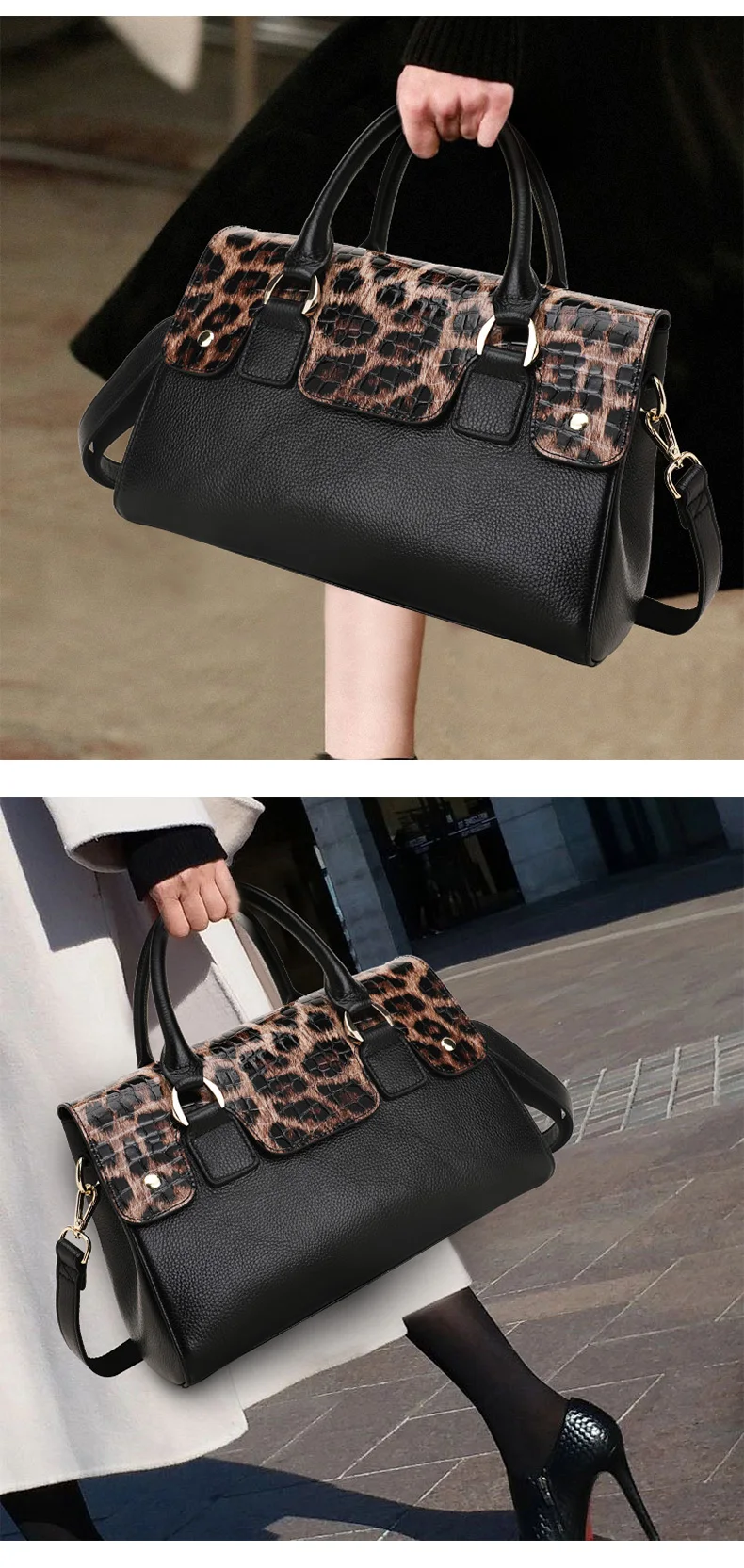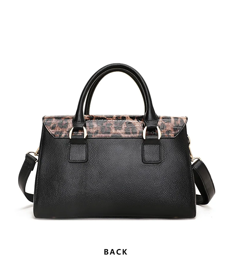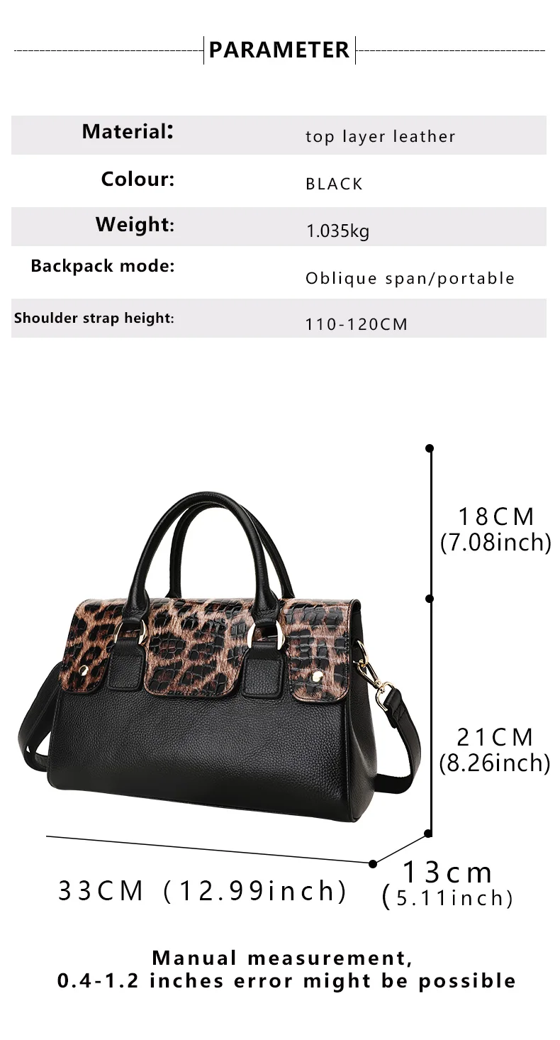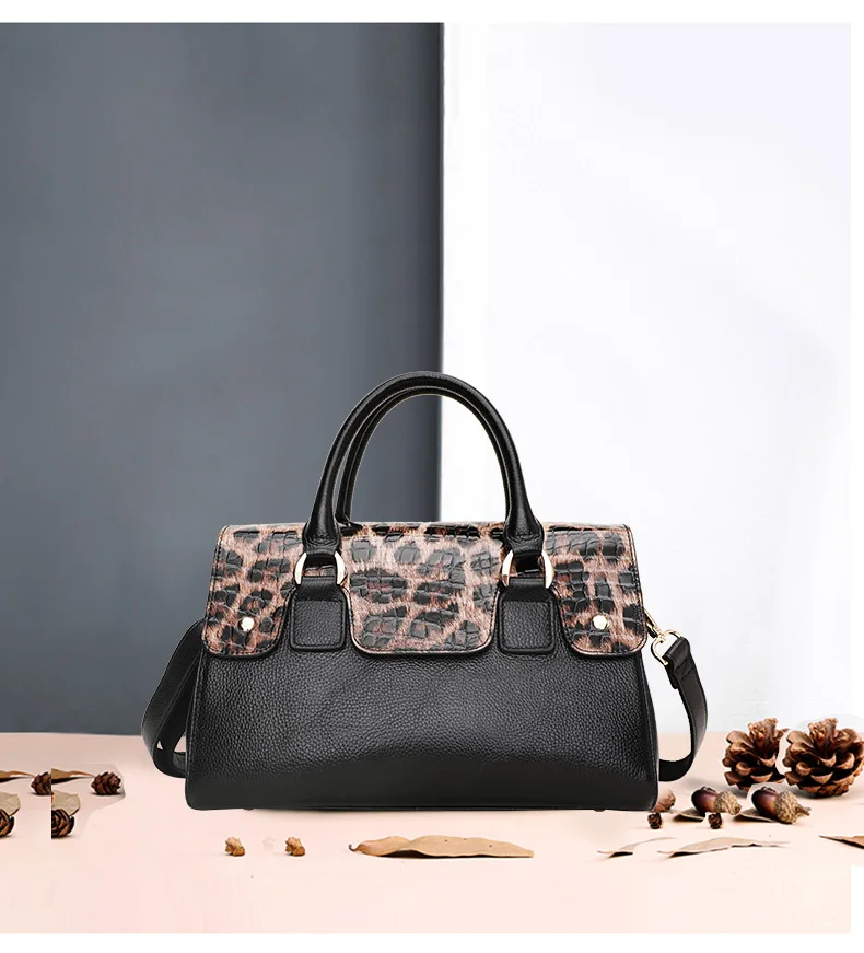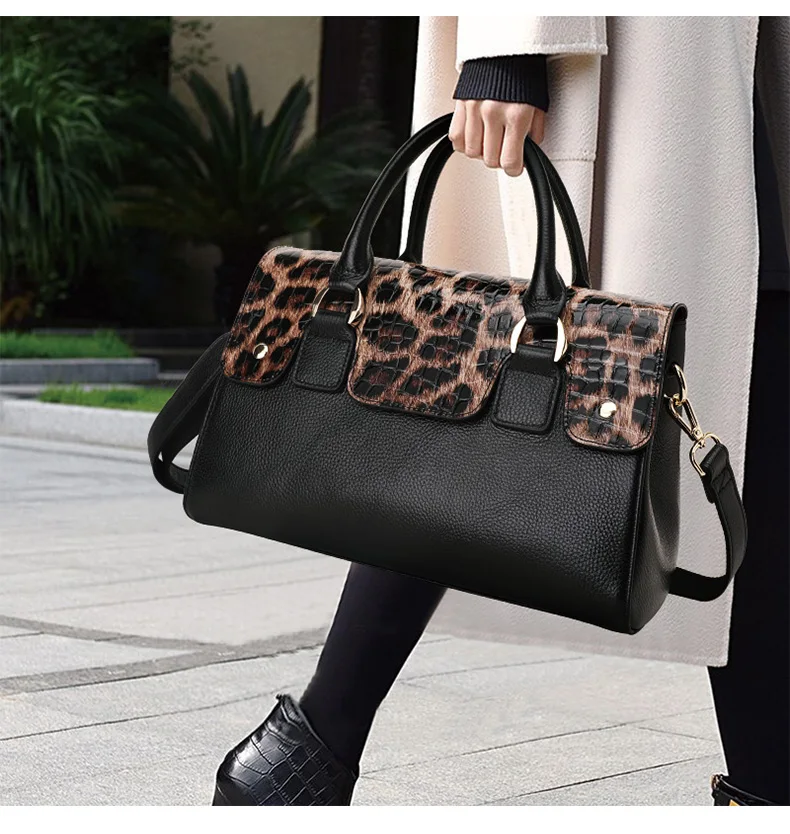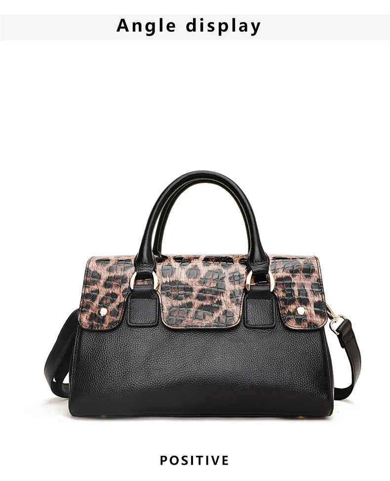 Aidrani Classic Leopard Pattern Genuine Leather Women's Handbag Contrast Cowhide One Shoulder Crossbody Bag