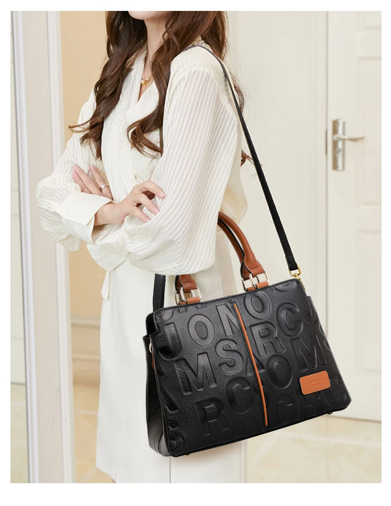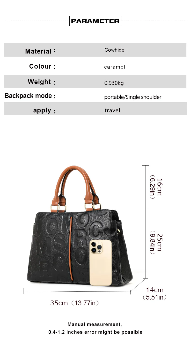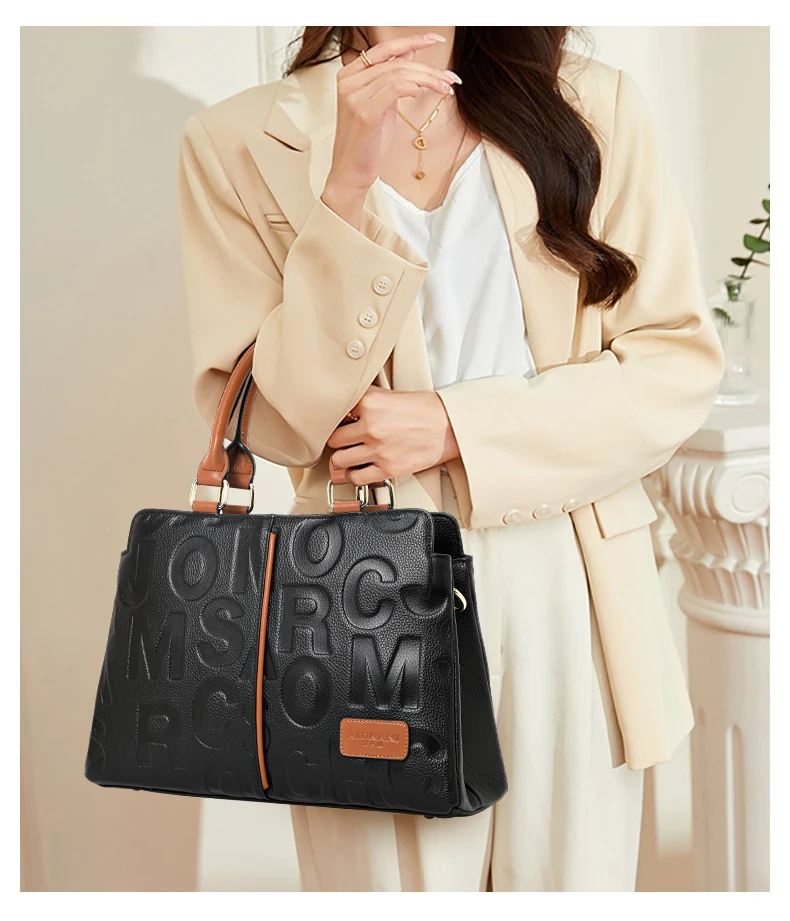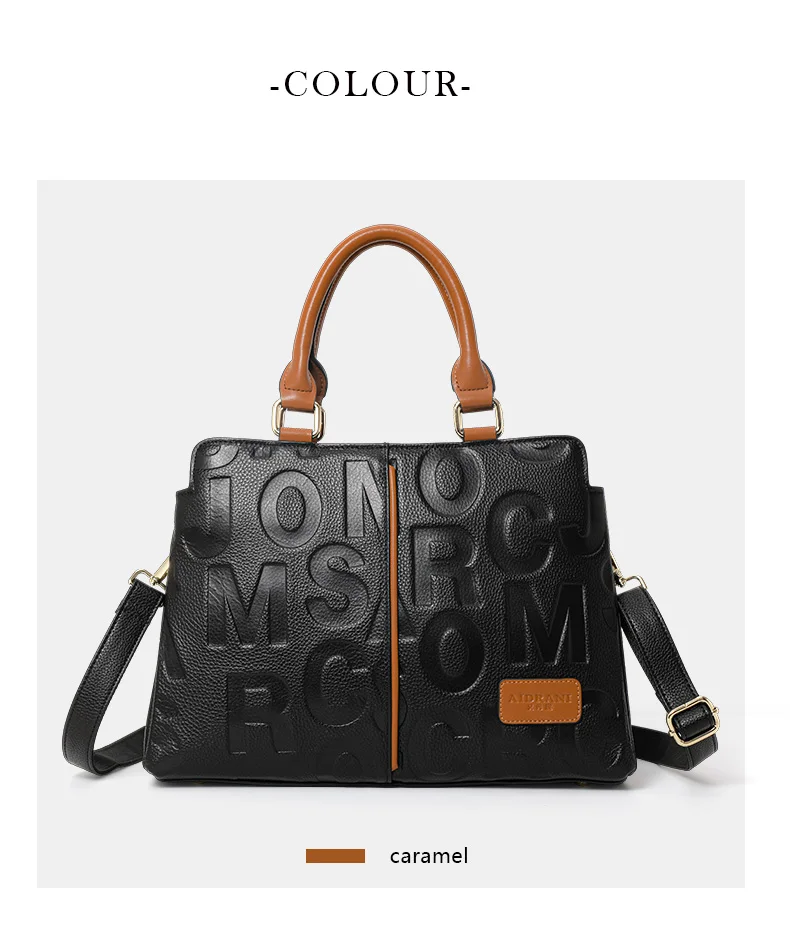 Aidrani genuine leather letter design women's handbag, large capacity shoulder bag made of 100% soft cowhide